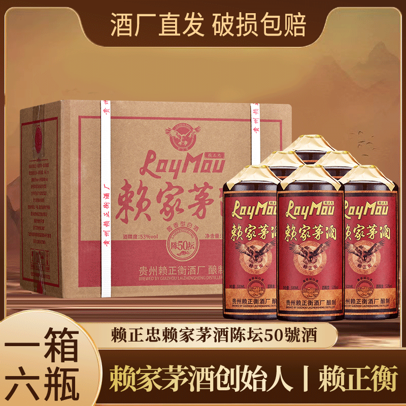 赖正忠赖家茅酒陈坛50號酒53度酱香型白酒500ml*6瓶
