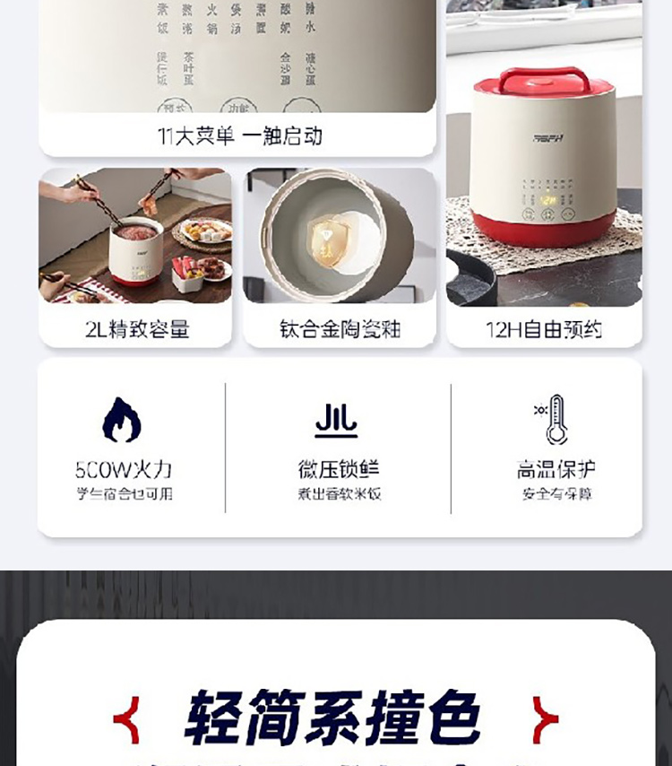 康佳多功能电饭煲 大容量电饭锅不粘内胆 家用煮米 煮粥 煲汤 KDFB-3001E 3L