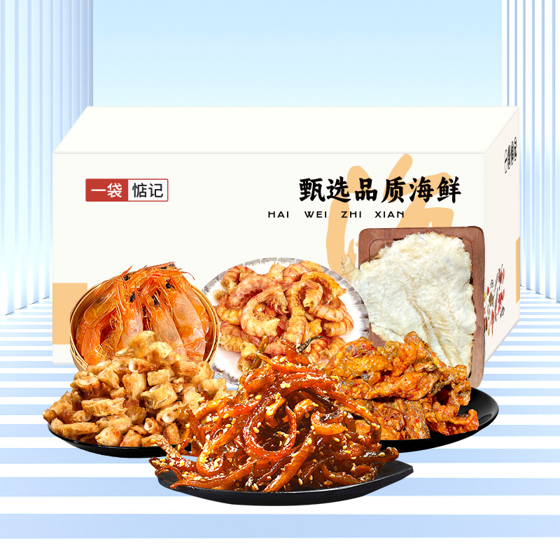 一袋惦记海鲜零食礼盒-89C型【鳕鱼片+香辣鳗鱼丝+烤虾干+蜜汁烤鱼皮+鱼骨酥+脆脆虾】