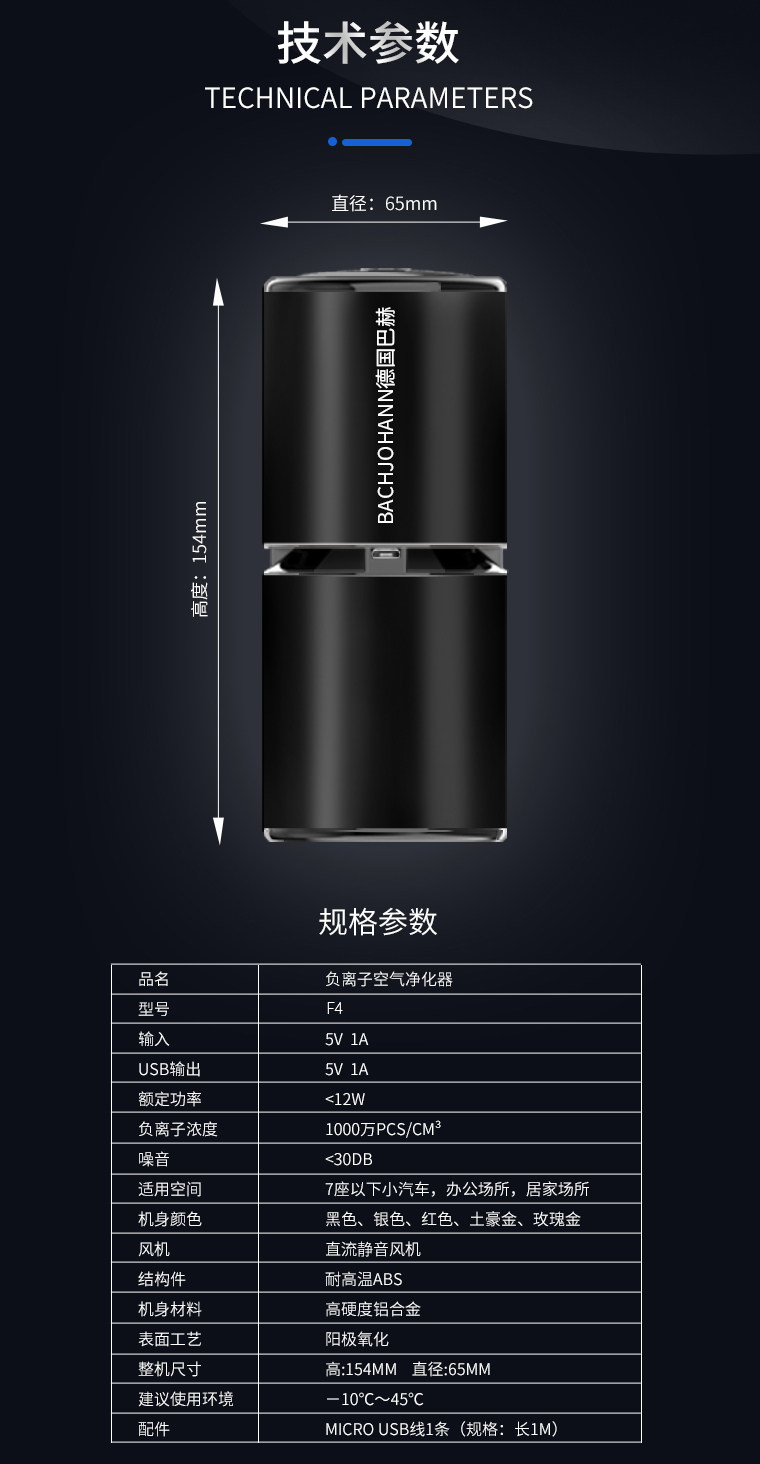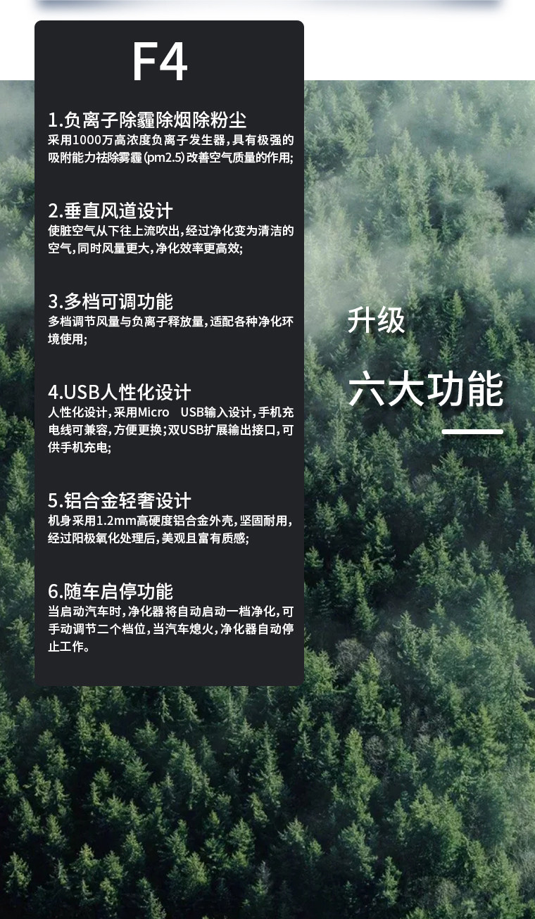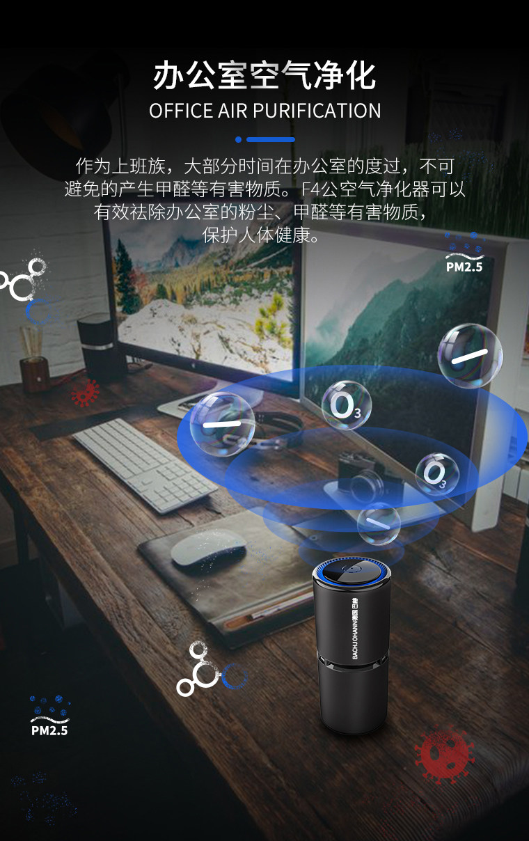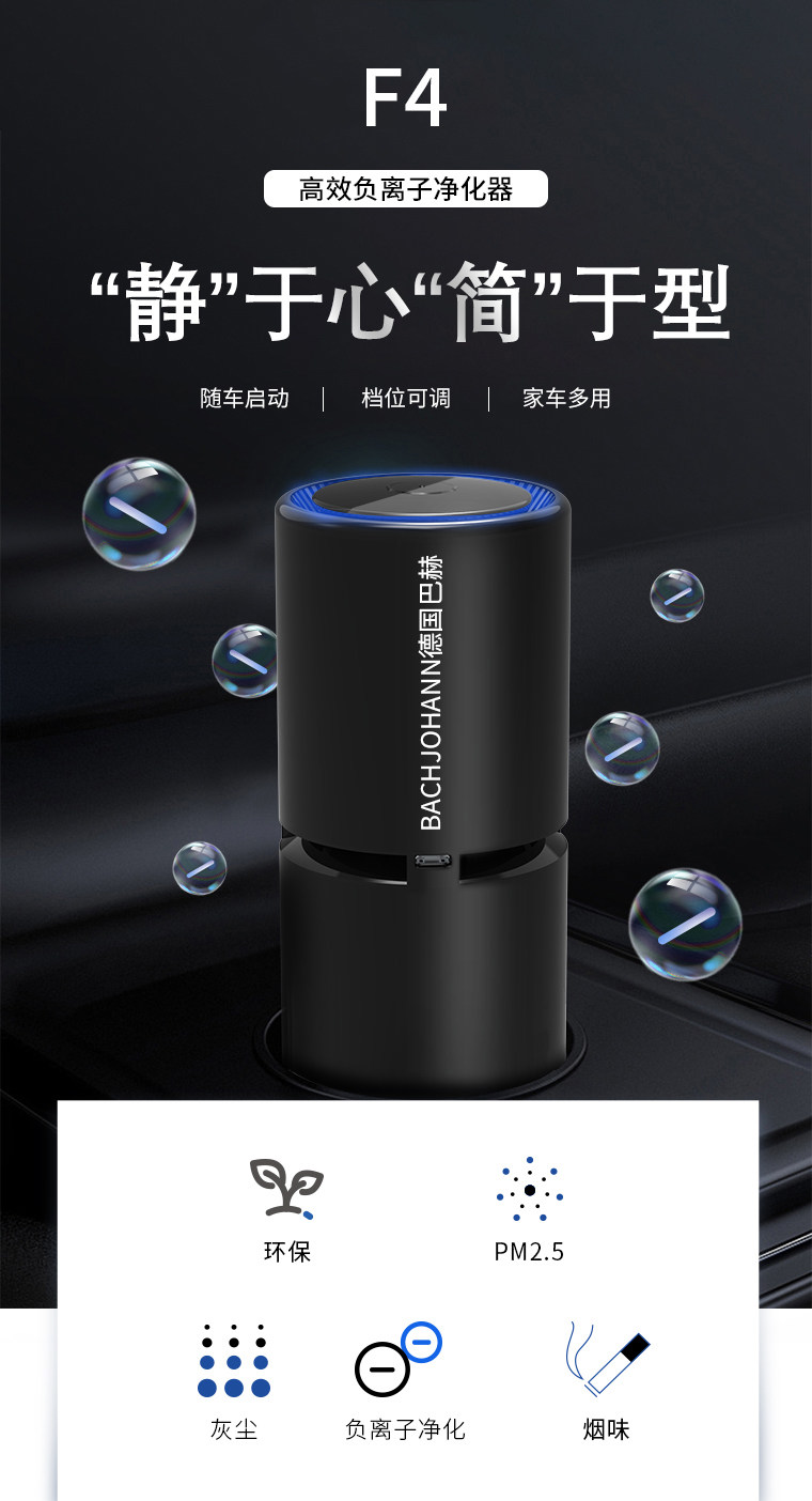 巴赫约翰车载净化器除甲醛消除异味新车负离子臭氧紫外线杀菌消毒消除机F4
