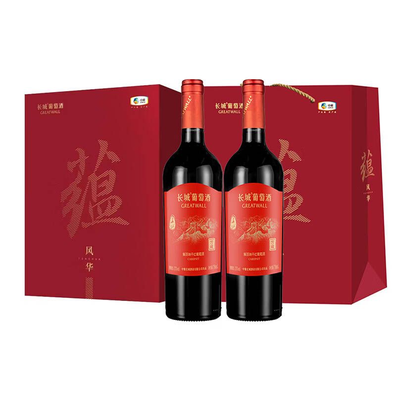 长城干红葡萄酒礼盒 750ml*2支 中粮集团 长城解百纳窖藏干红葡萄酒 红酒礼盒+手提袋因为 天气原因,东三省、内蒙、新疆西藏等区域零单停止发货