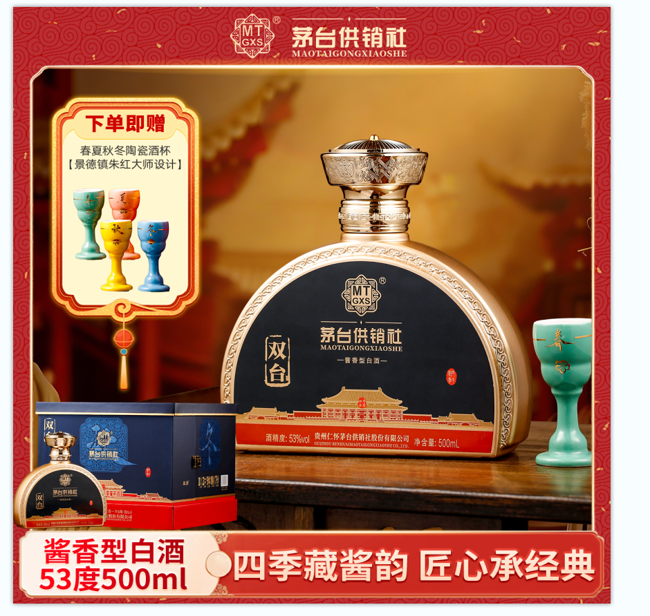 茅台供销社四季藏酱韵 匠心承经典 马年新品 春夏秋冬礼盒套组500ml*4瓶送陶瓷酒杯四个