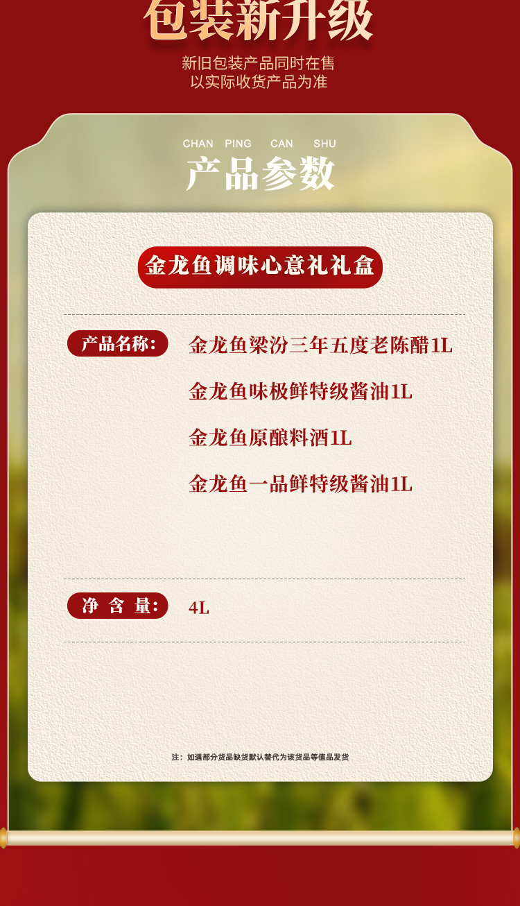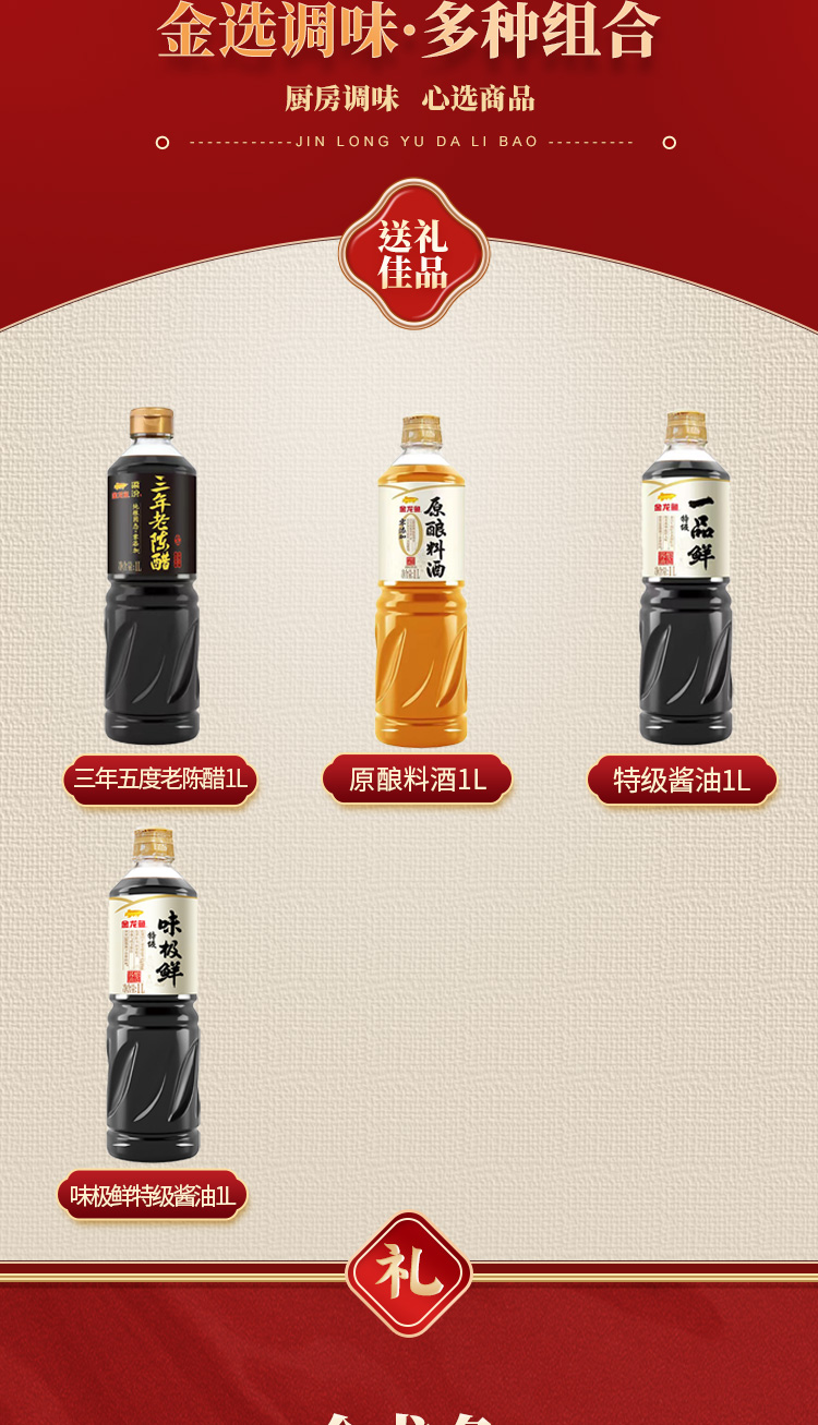 金龙鱼调味心意礼礼盒 老陈醋 酱油 料酒 精美包装 节日福利 企业好礼