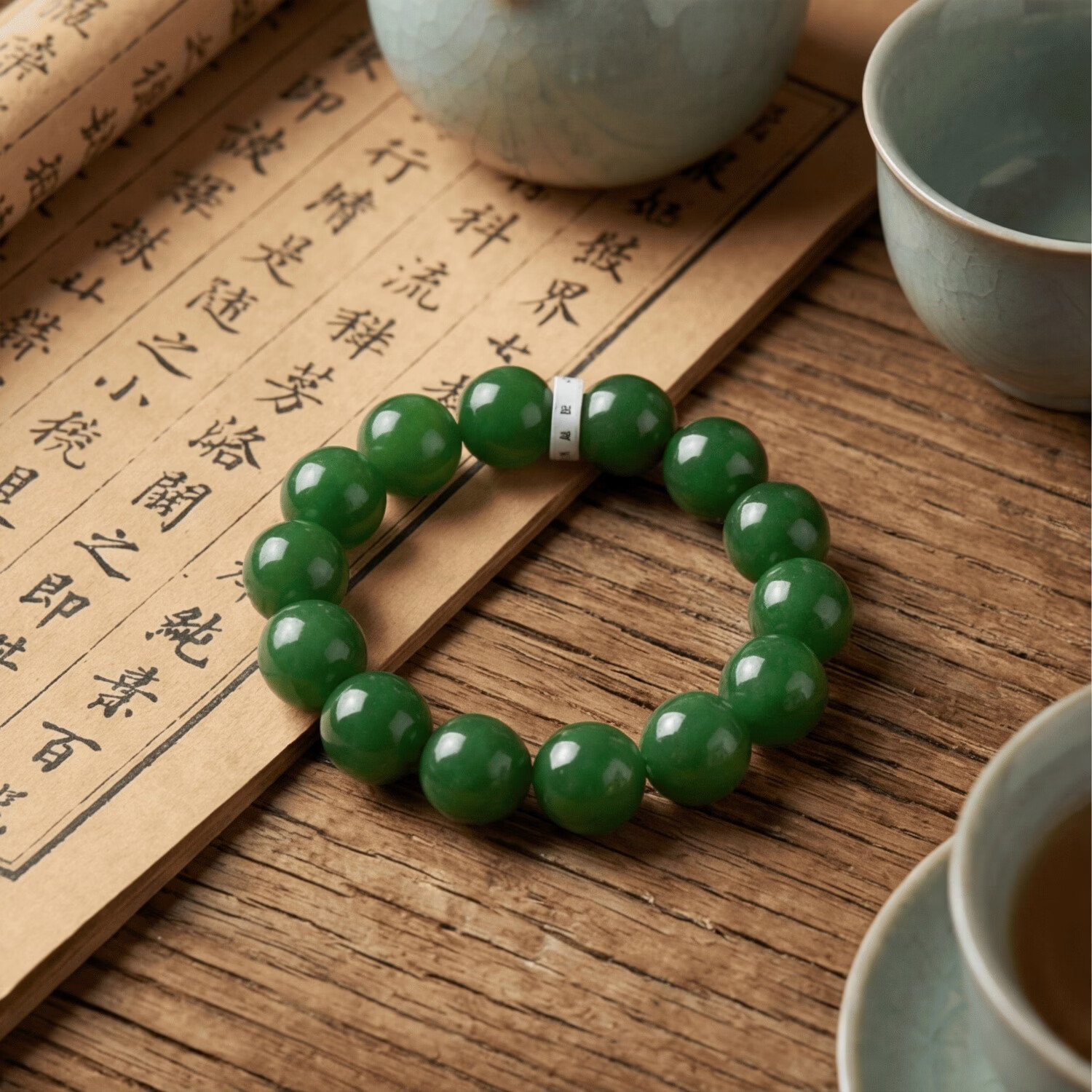 翠芯媛天然和田玉菠菜绿手串 碧玉圆珠手串【一物一证】
