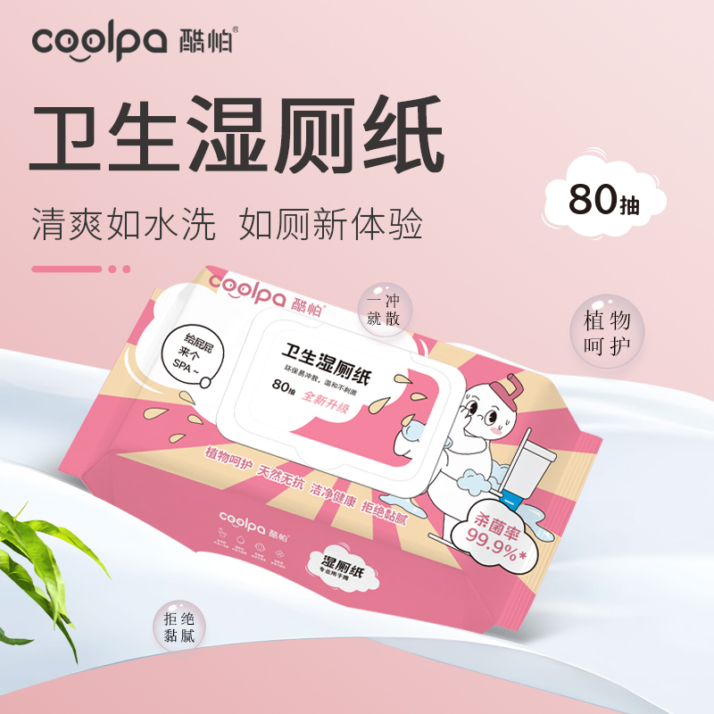 【3包】酷帕除菌80抽湿厕纸可冲散80片*3包