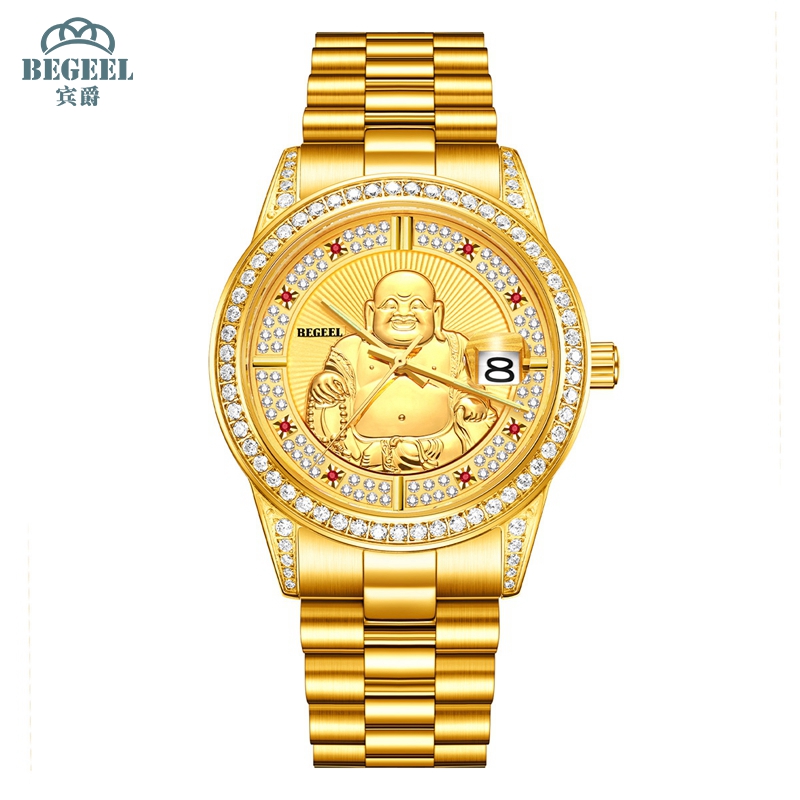 每证一品-宾爵足金弥勒金佛红宝石晶钻腕表男进口机械机芯夜光防水男士品味奢华 足金弥勒金(999镀金、8颗红宝石、75水晶钻、进口机芯)B3625M4J4
