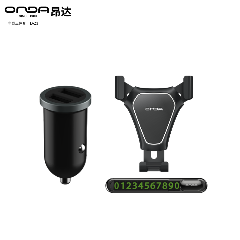 昂达车载三件套LAZ3车载充电器*1+车载重力支架*1+停车号码牌*1
