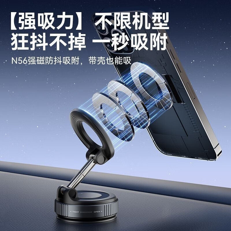亰维渡手机支架车载真空吸附吸盘式汽车导航中控台防抖导航专用适用于特斯拉小米宝马奥迪奔驰 黑色 升级版强磁吸附K007
