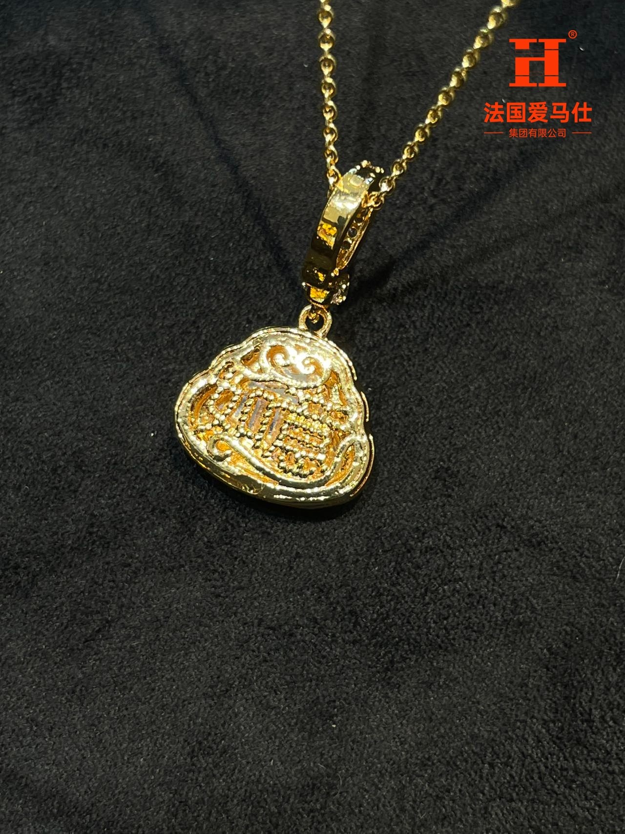 中国黄金珠宝首饰5G黄金古法足金心中唯一吊坠项链