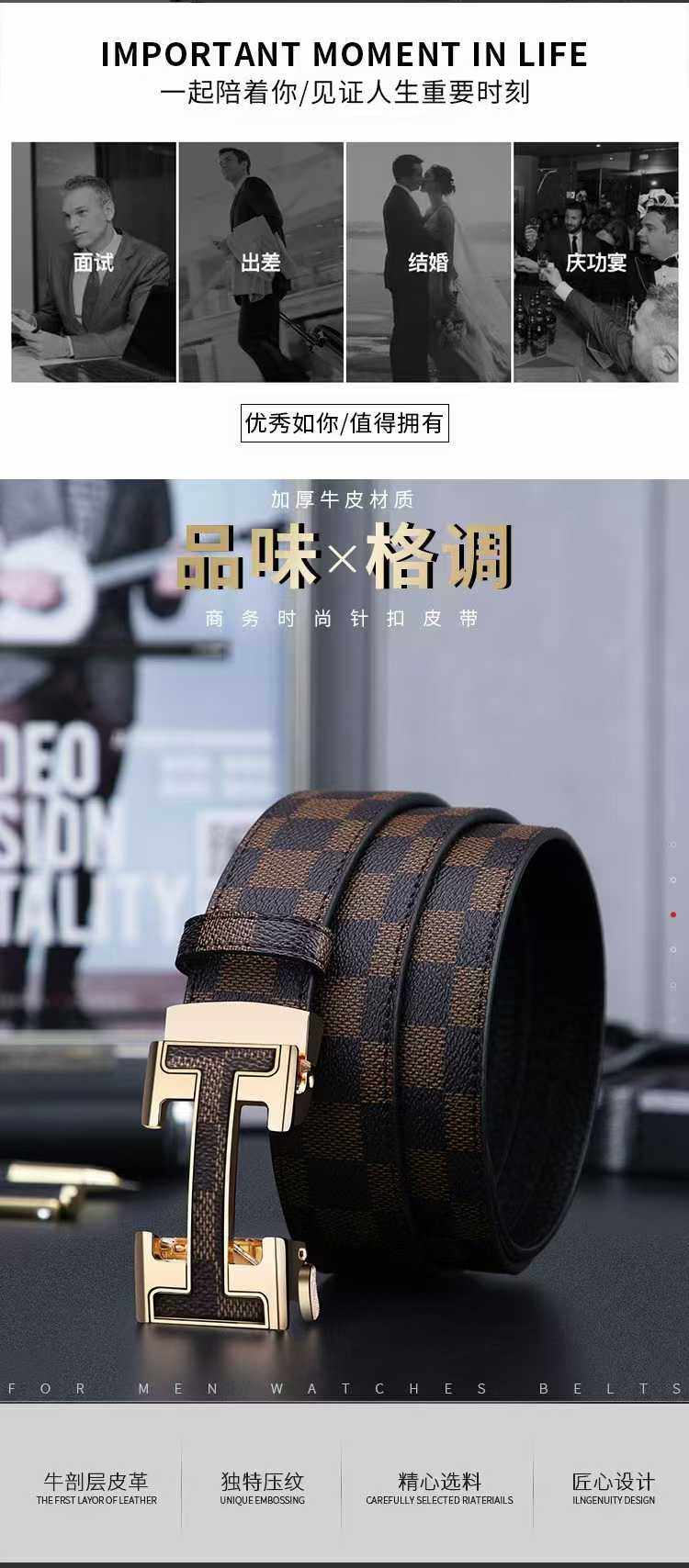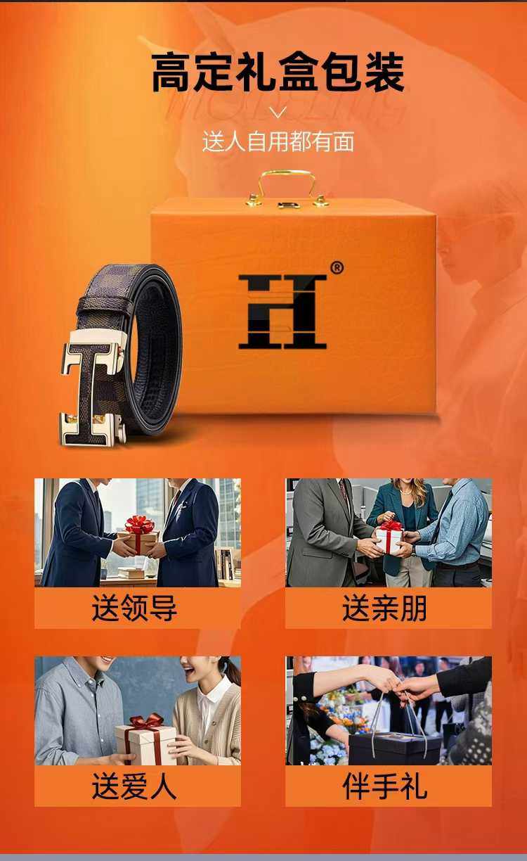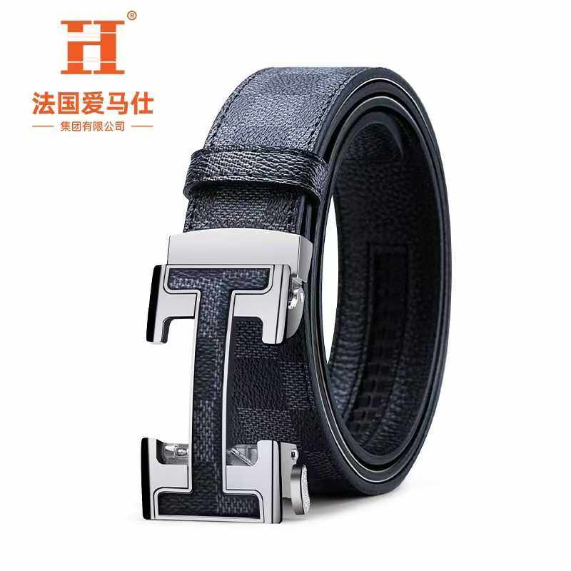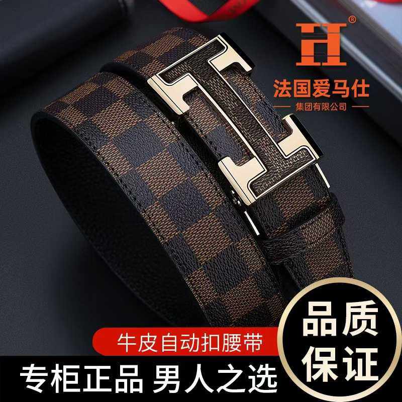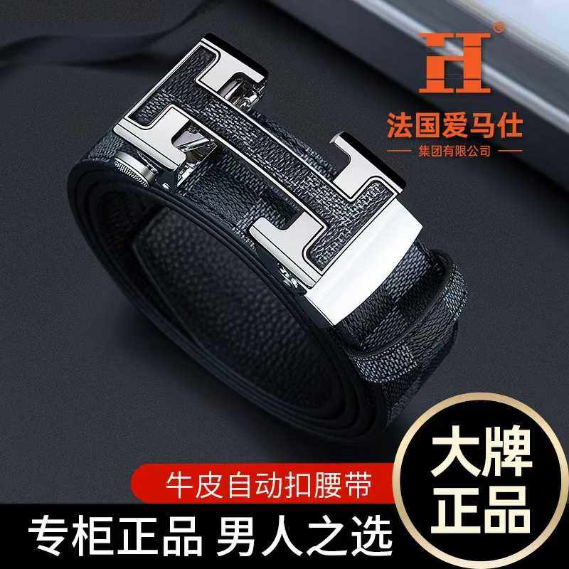 法国爱马仕H自动扣优质牛皮花纹皮带专柜正品男人之选