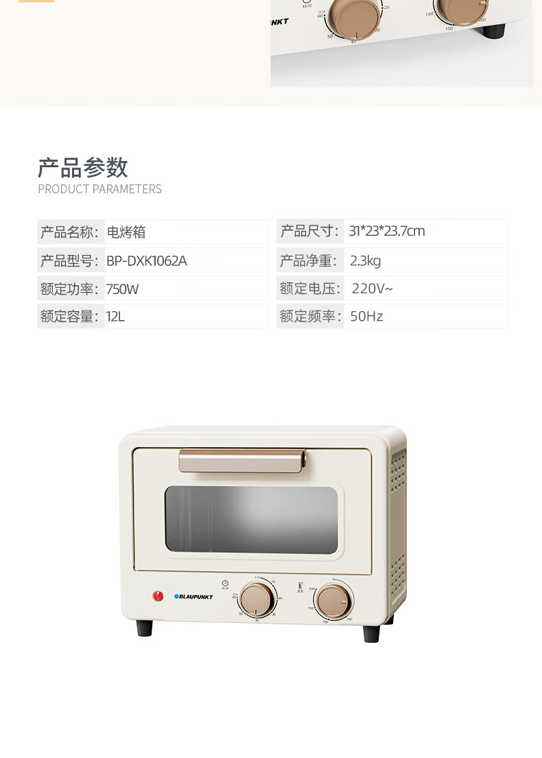 德国蓝宝复古电烤箱 家用迷你多功能烤箱 12L容量小巧不占地 BP-DXK1062A