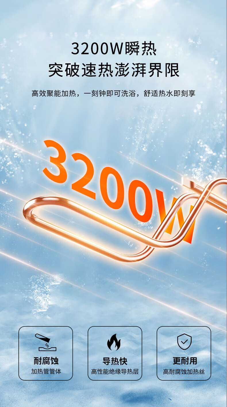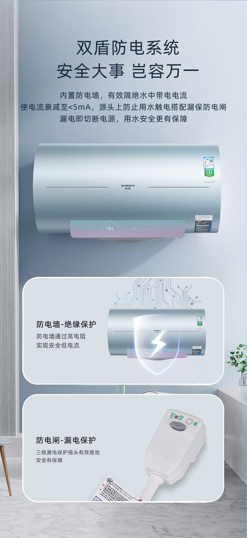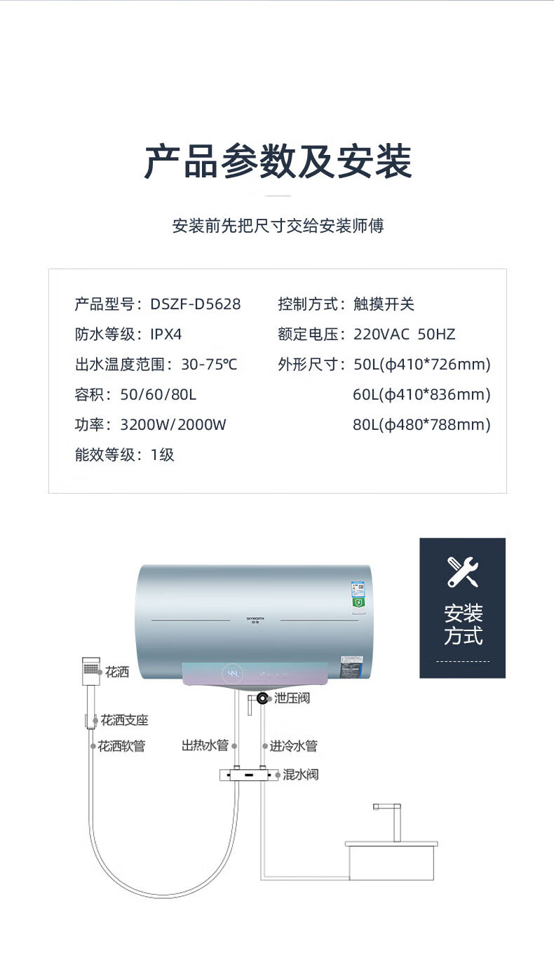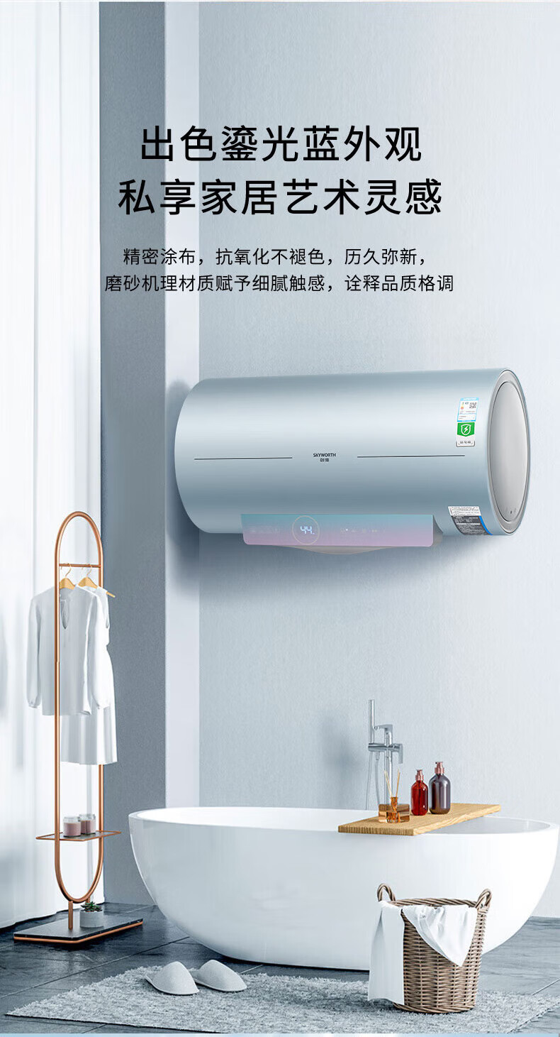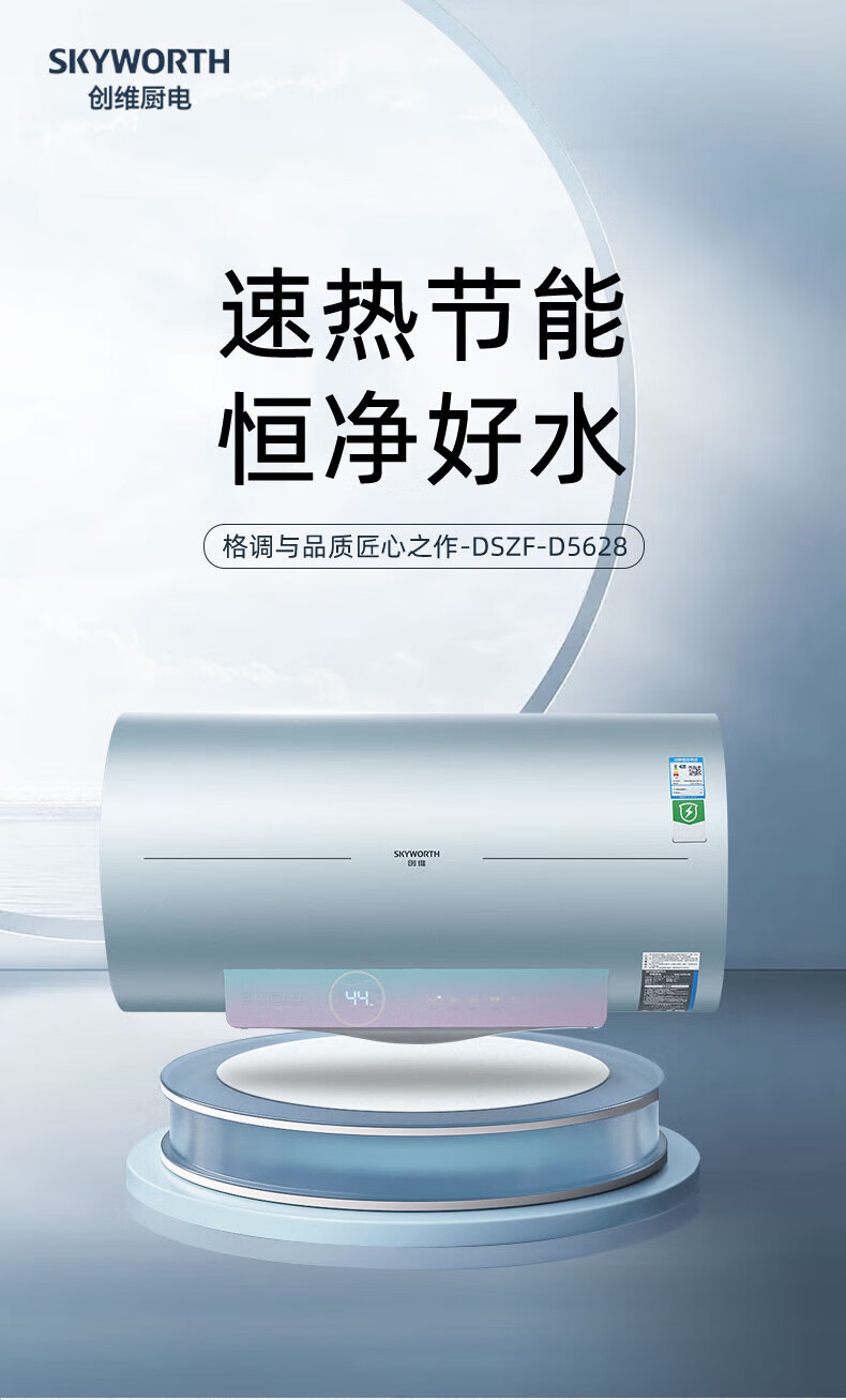 创维80L大功率智能电热水器3200W速热节能 一级能效热水器DSZF-D5628-80 蓝色 【不含安装 基础安装费50元/台】