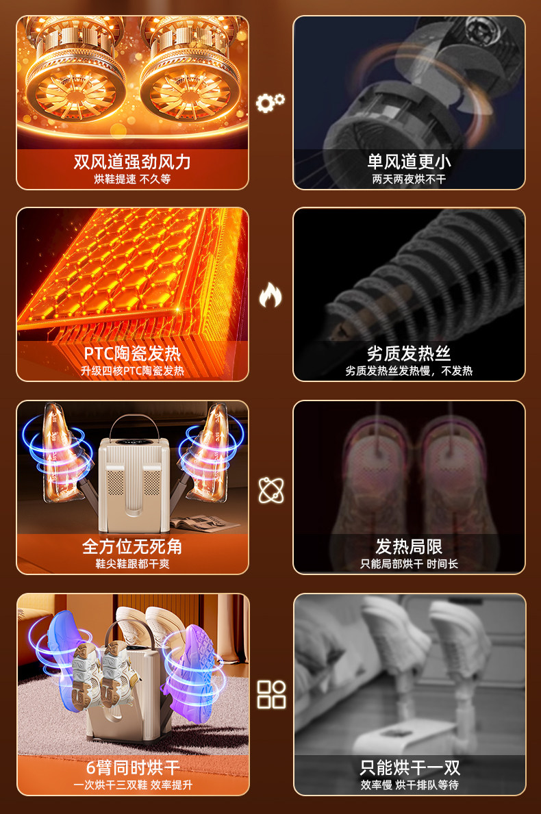 新款多功能六臂干鞋器家用恒温除湿智能鞋子烘干机
