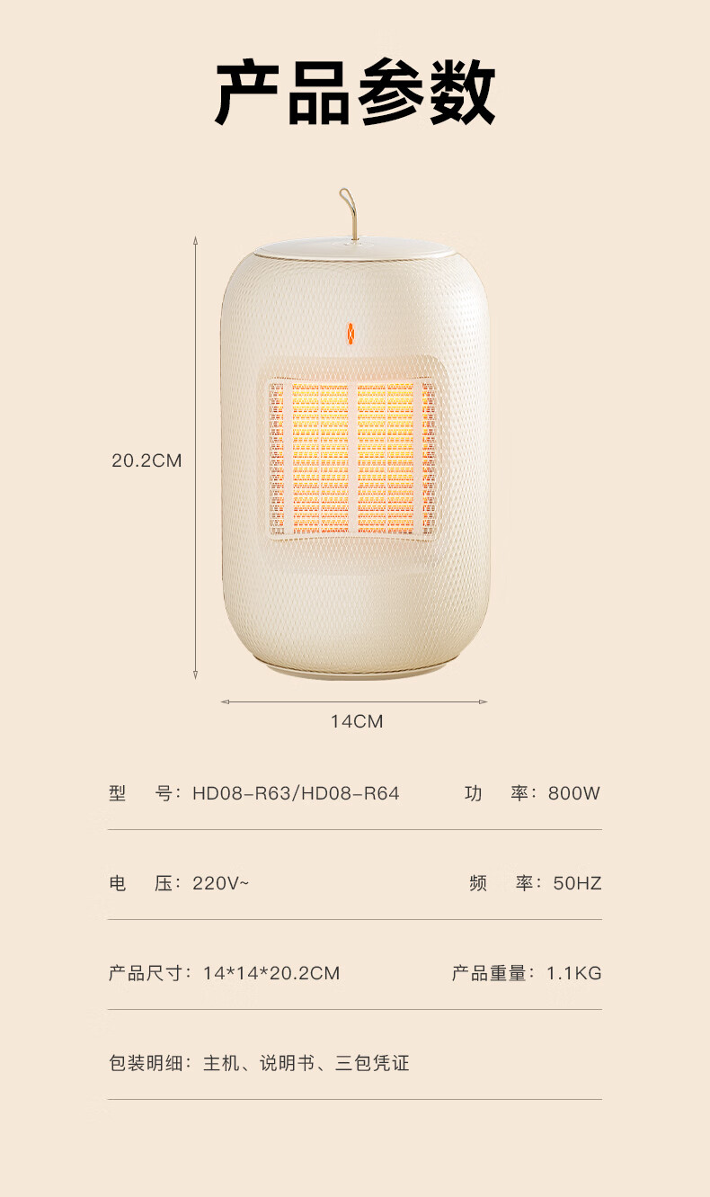 奥戈那 灯笼暖风机 家用暖风机节能省电 办公室电暖器 升级摇头款 型号:HD08-R64