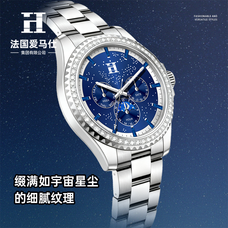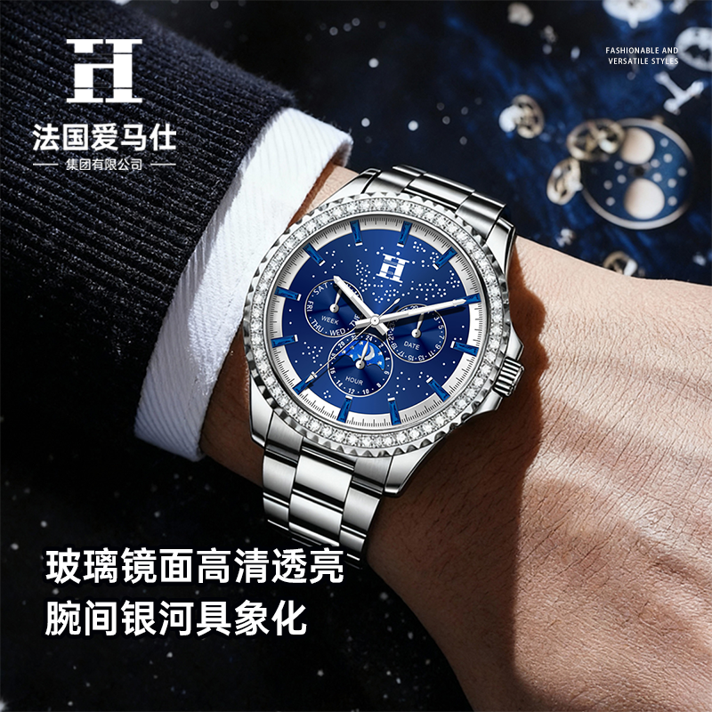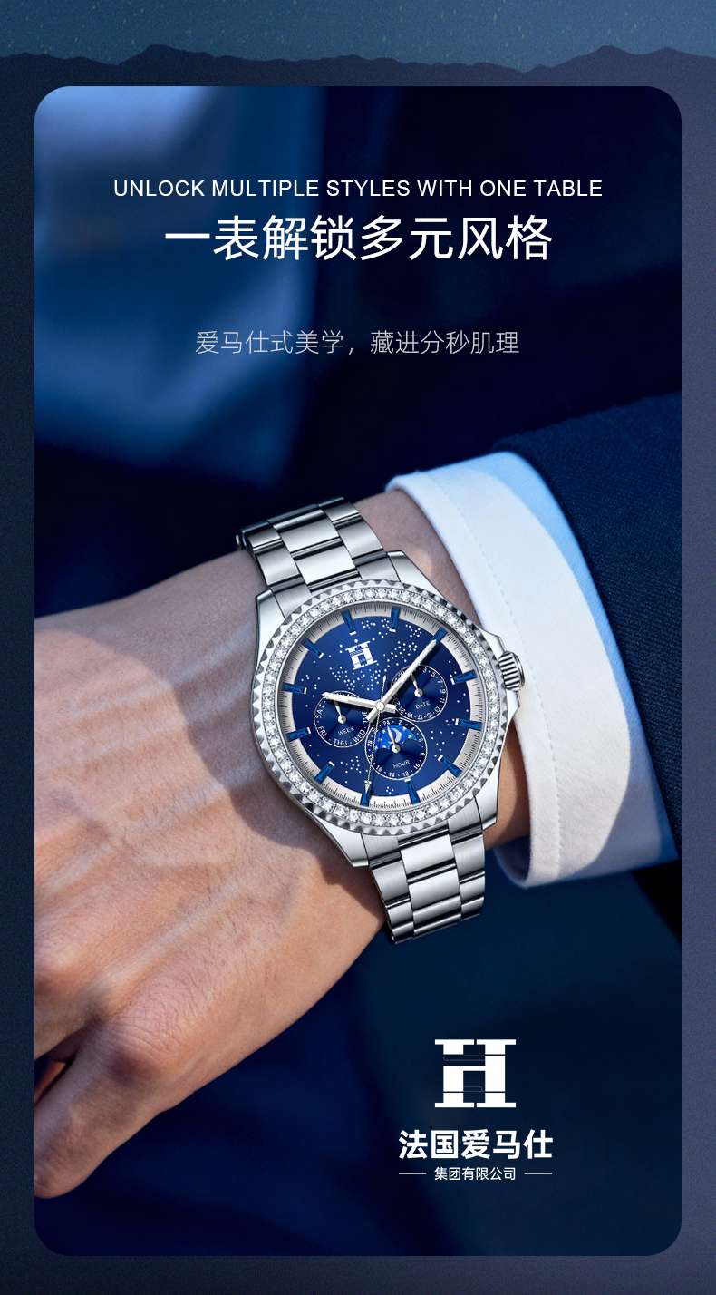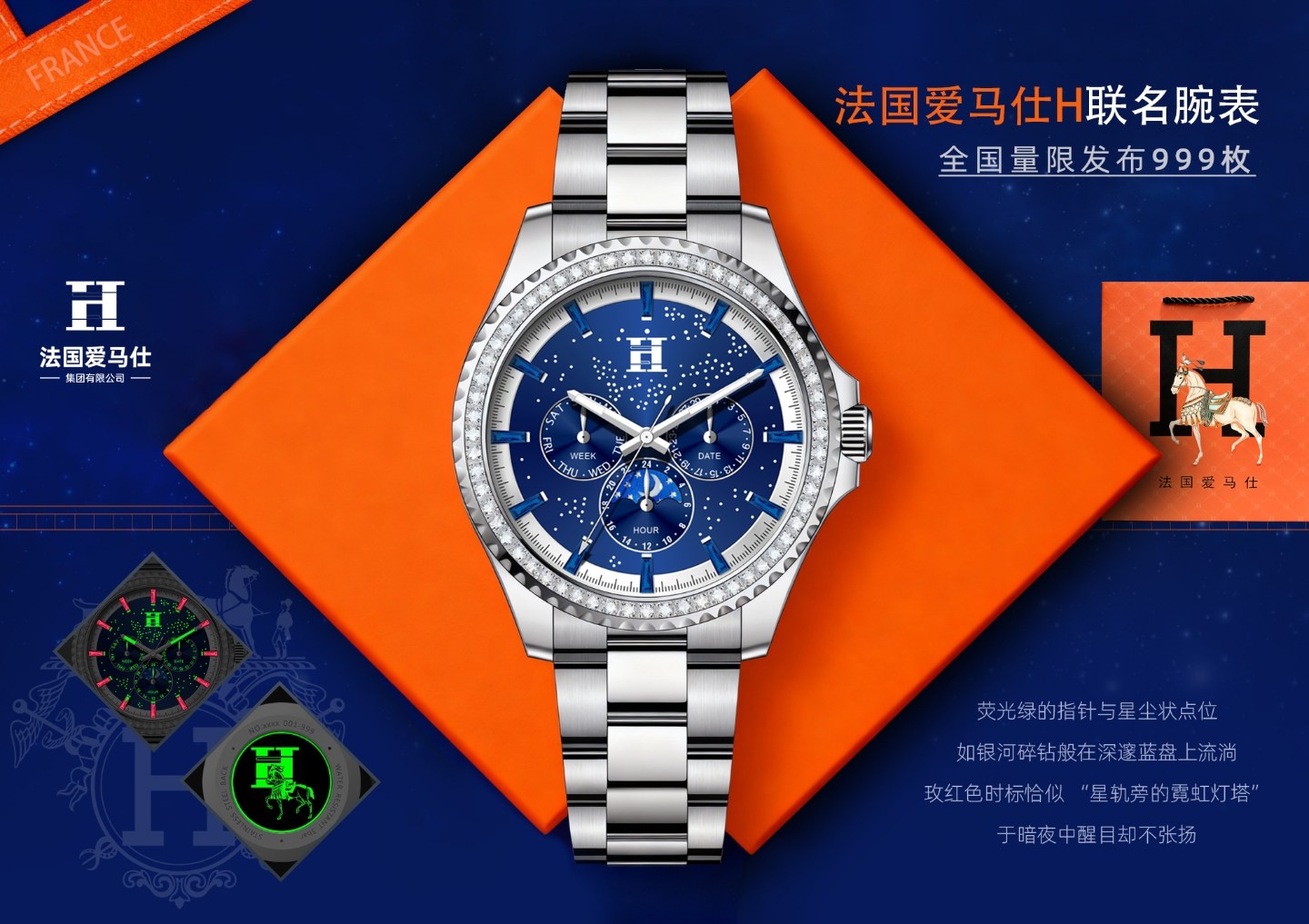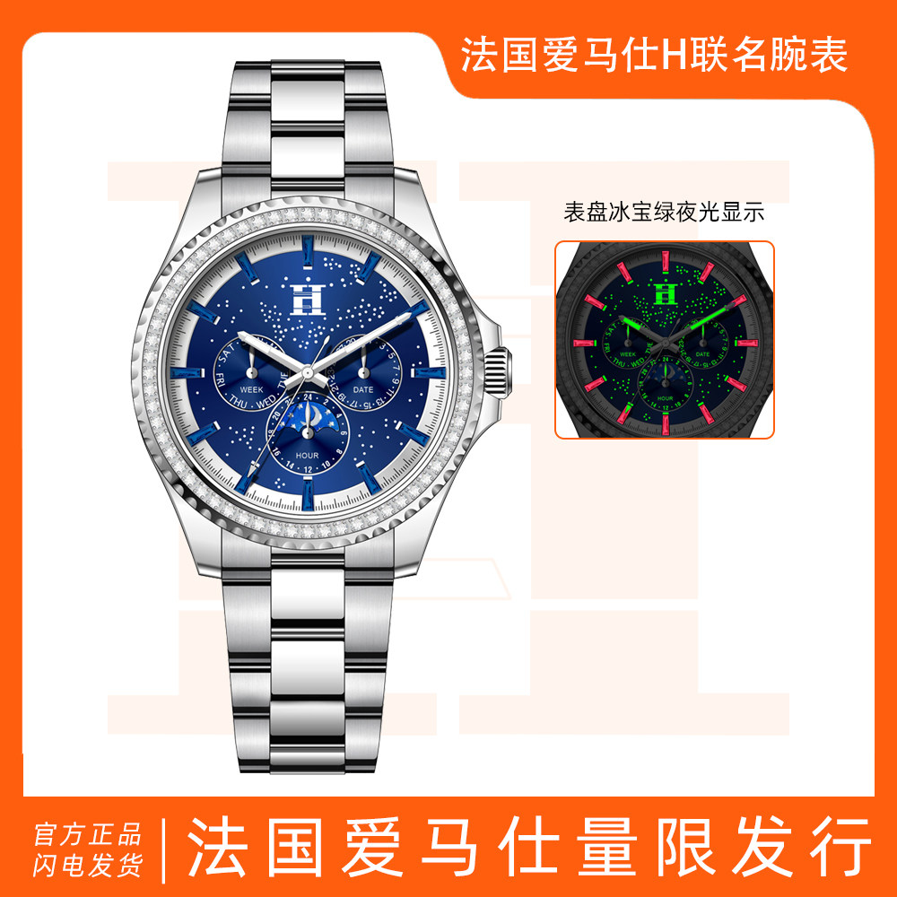 法国爱马仕H星夜骑士徽章多功能潮流男士腕表双蝴蝶按压卡扣手表