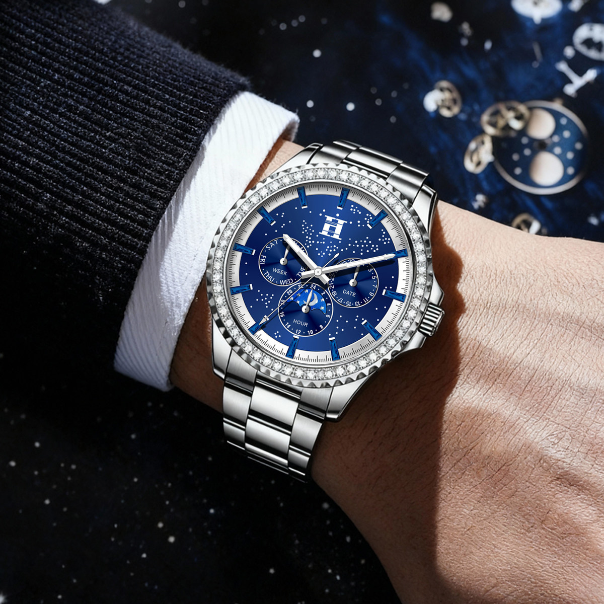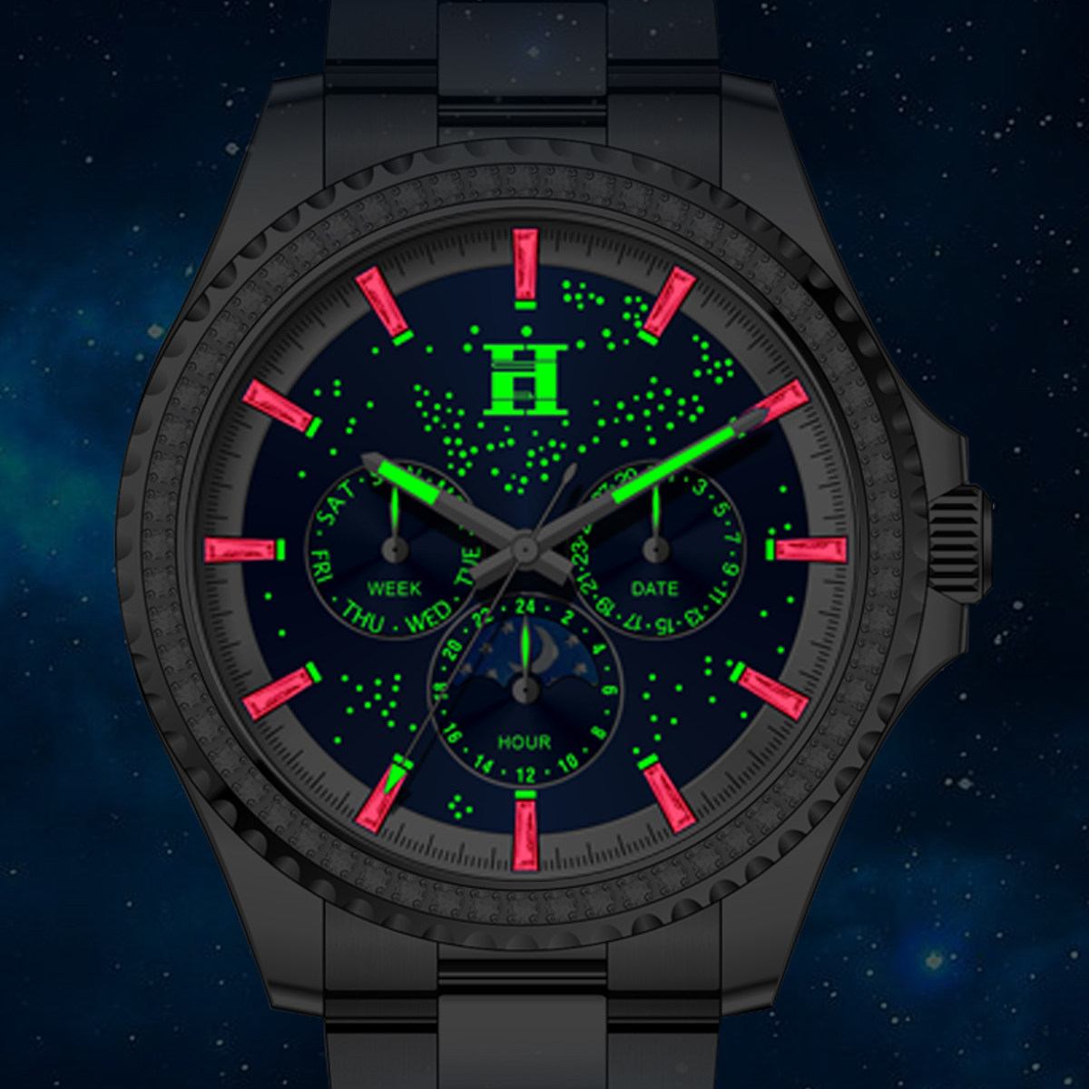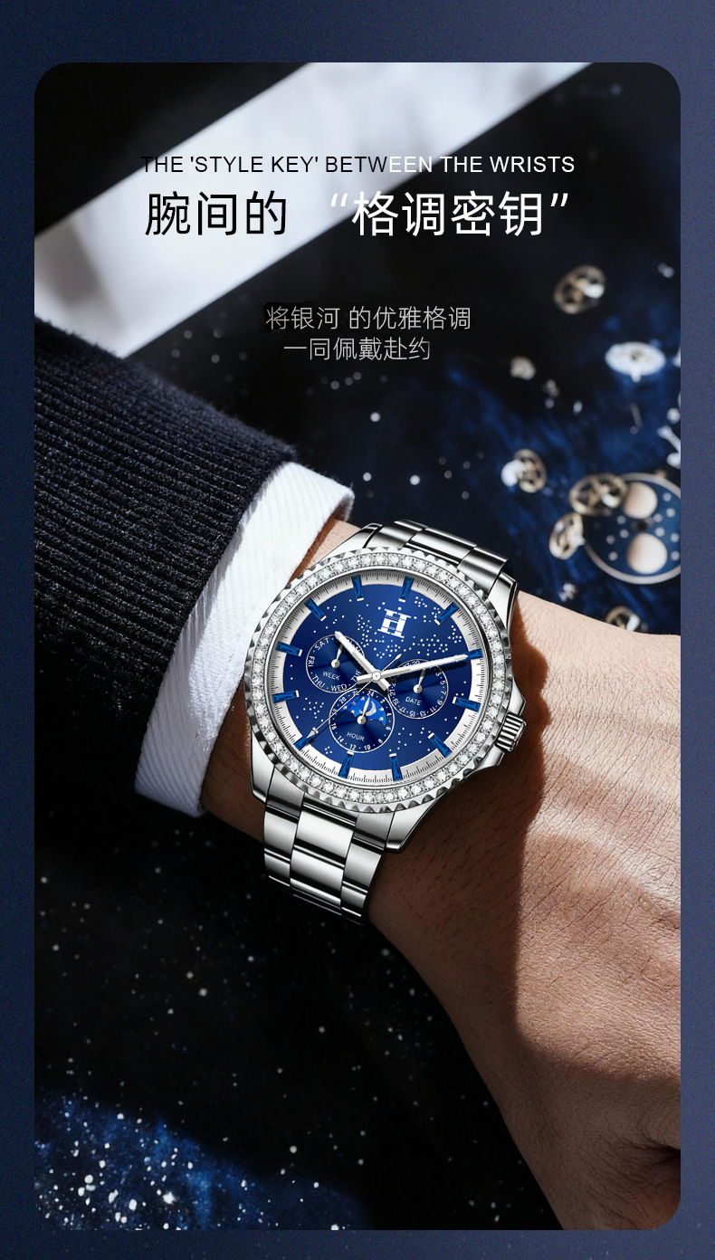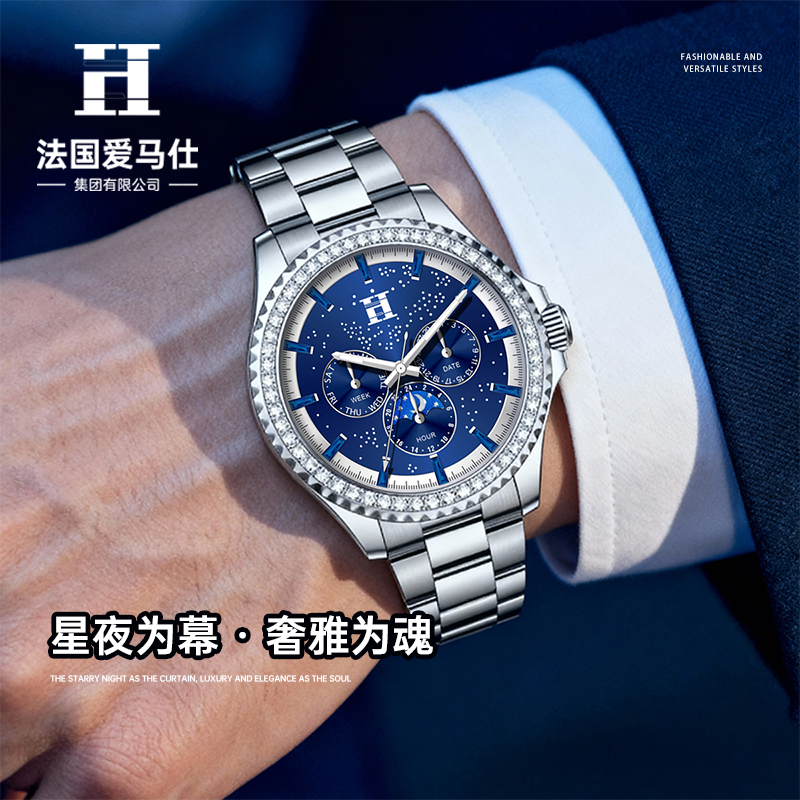法国爱马仕H星夜骑士徽章多功能潮流男士腕表双蝴蝶按压卡扣手表