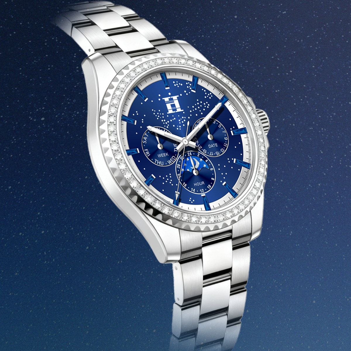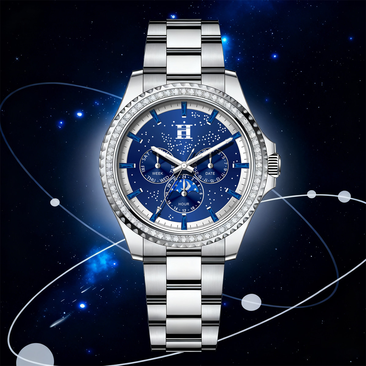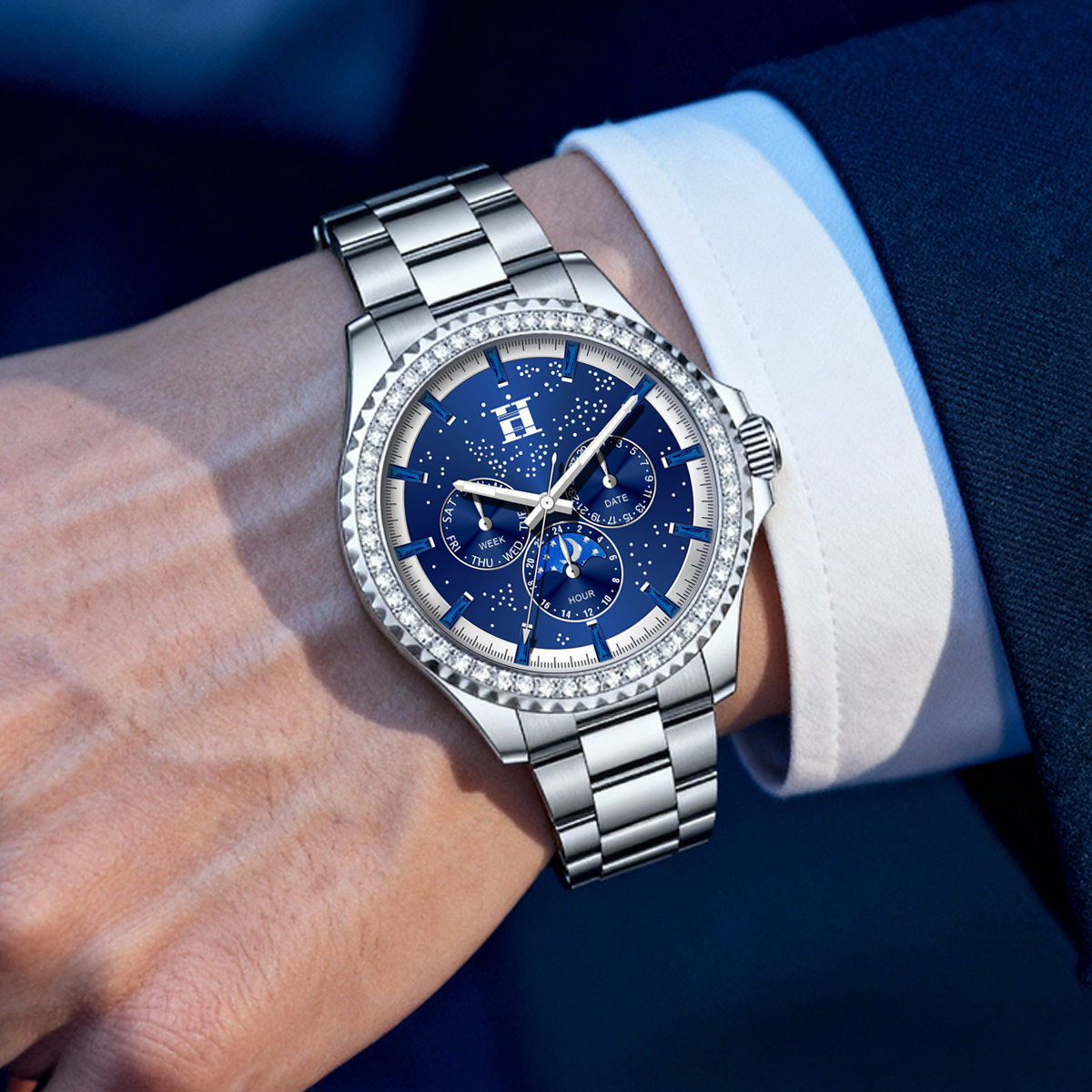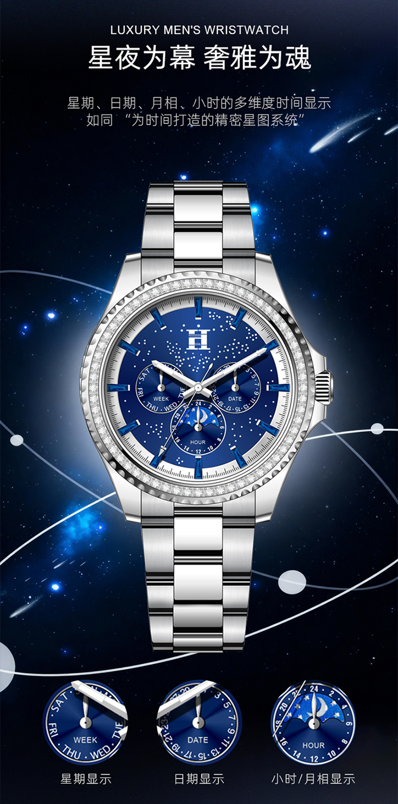 法国爱马仕H星夜骑士徽章多功能潮流男士腕表双蝴蝶按压卡扣手表