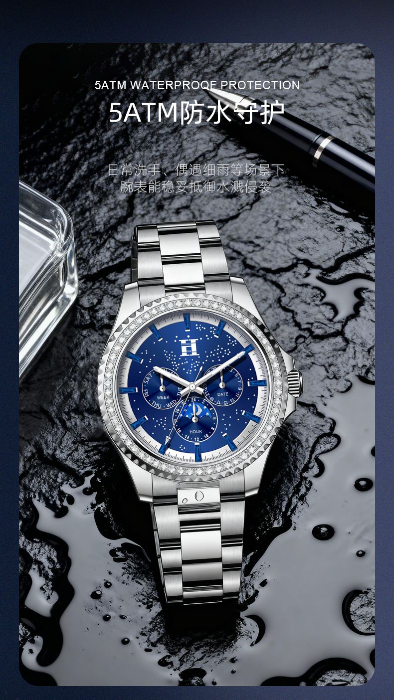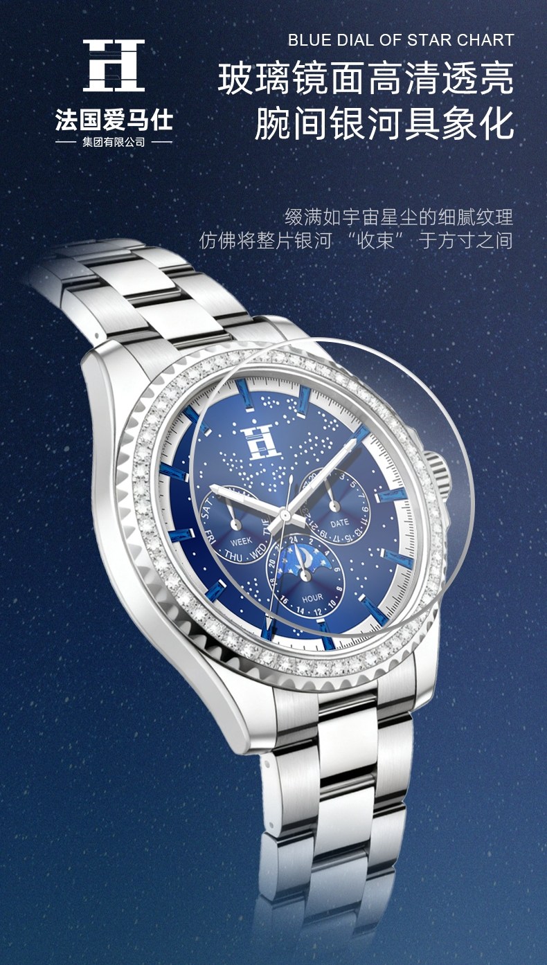 艾克朗icrown豪华气质全钢自动机械表锆石手工镶嵌时尚手表JO16888