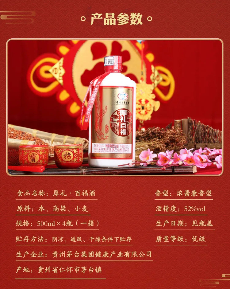 贵州茅台集团2019年老酒 厚礼百福500*4瓶整件礼盒装 白酒