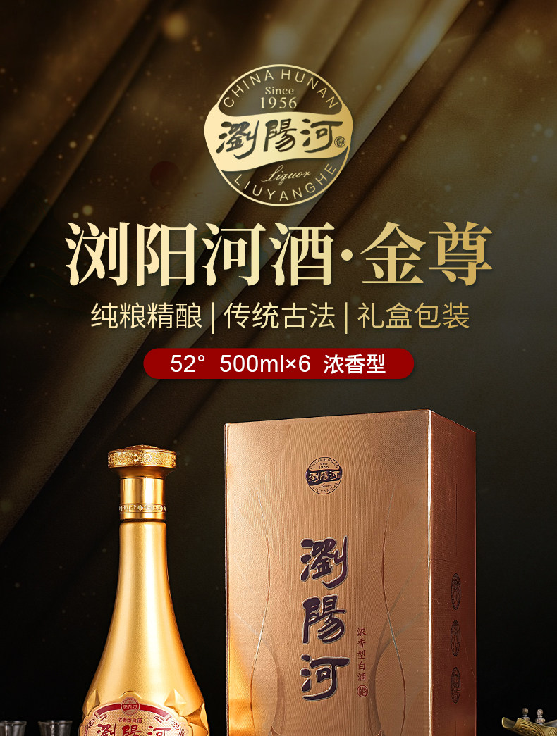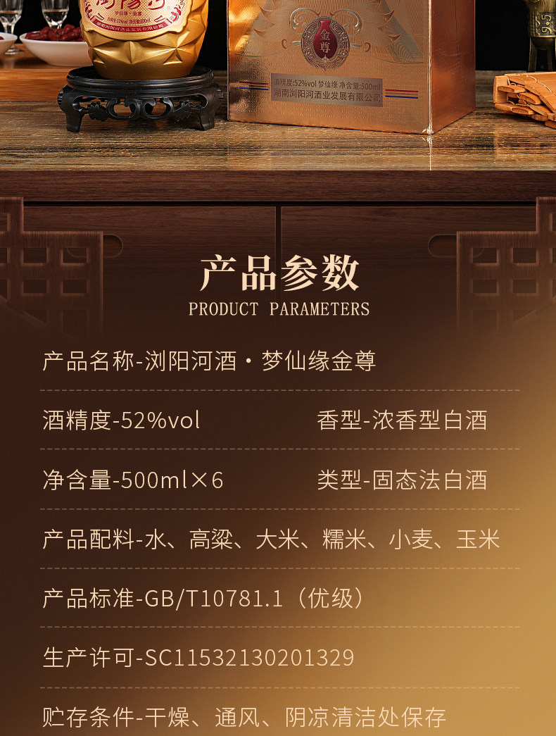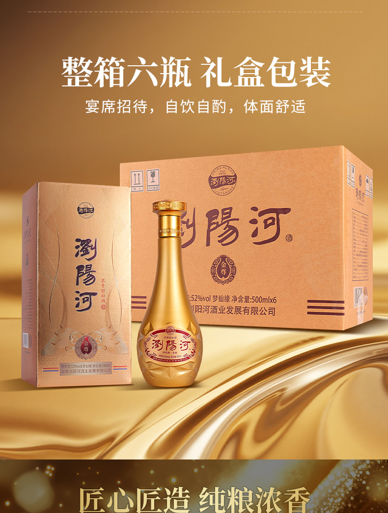 浏阳河 梦仙缘金尊52度浓香型白酒 500ML*6瓶