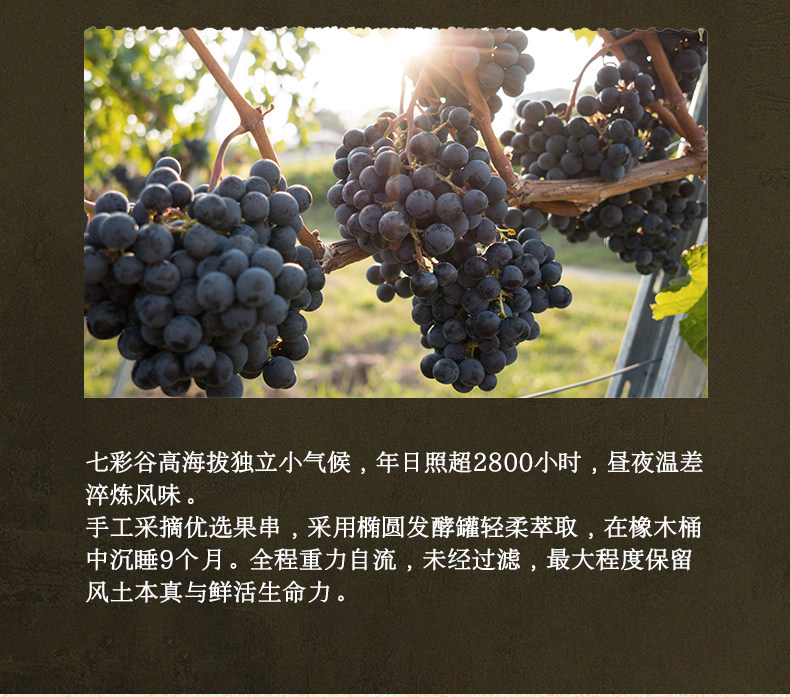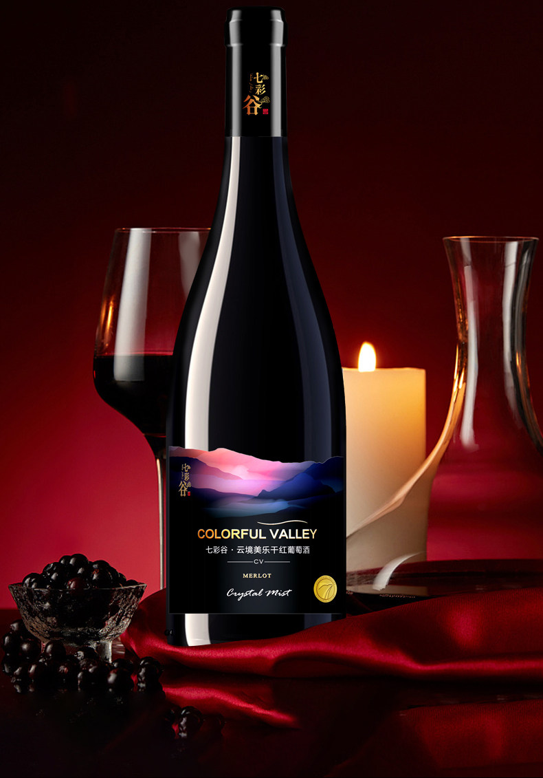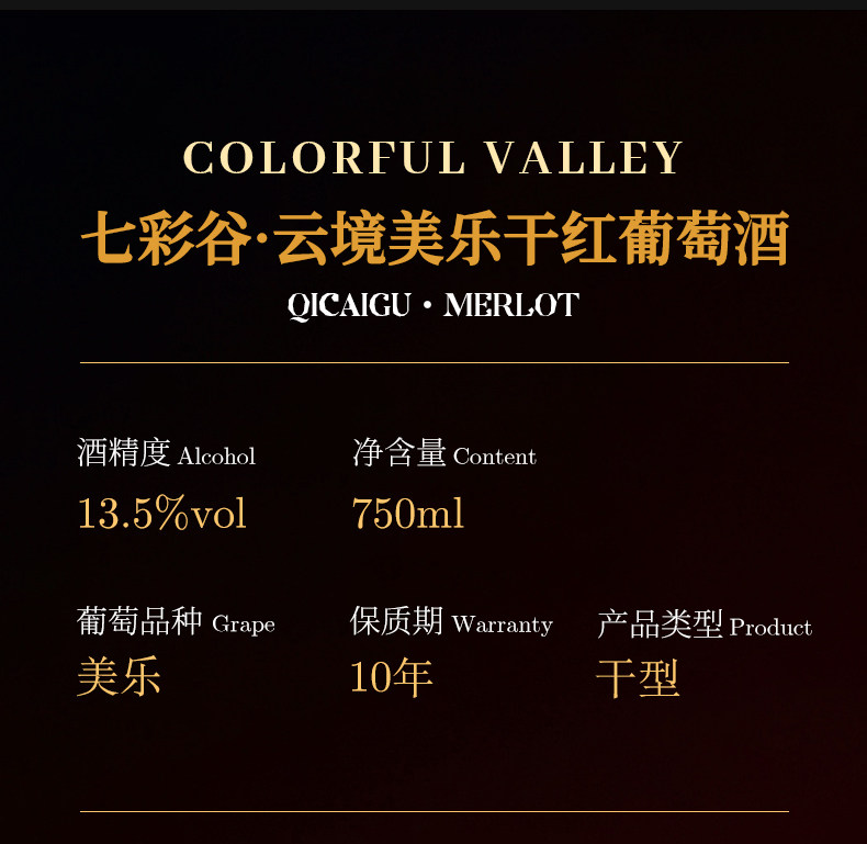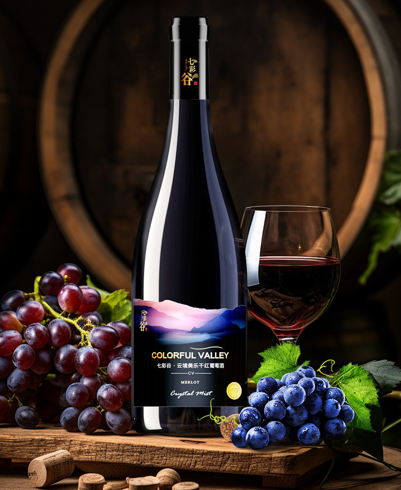 源自新疆 七彩谷云境 美乐干红葡萄酒 750ml*6瓶