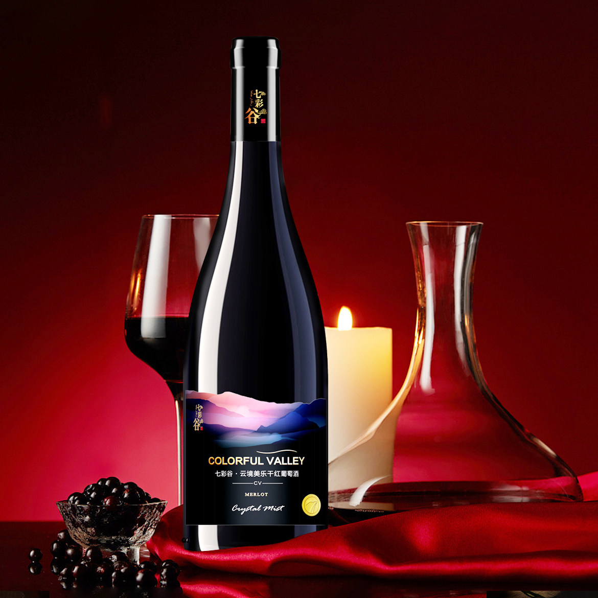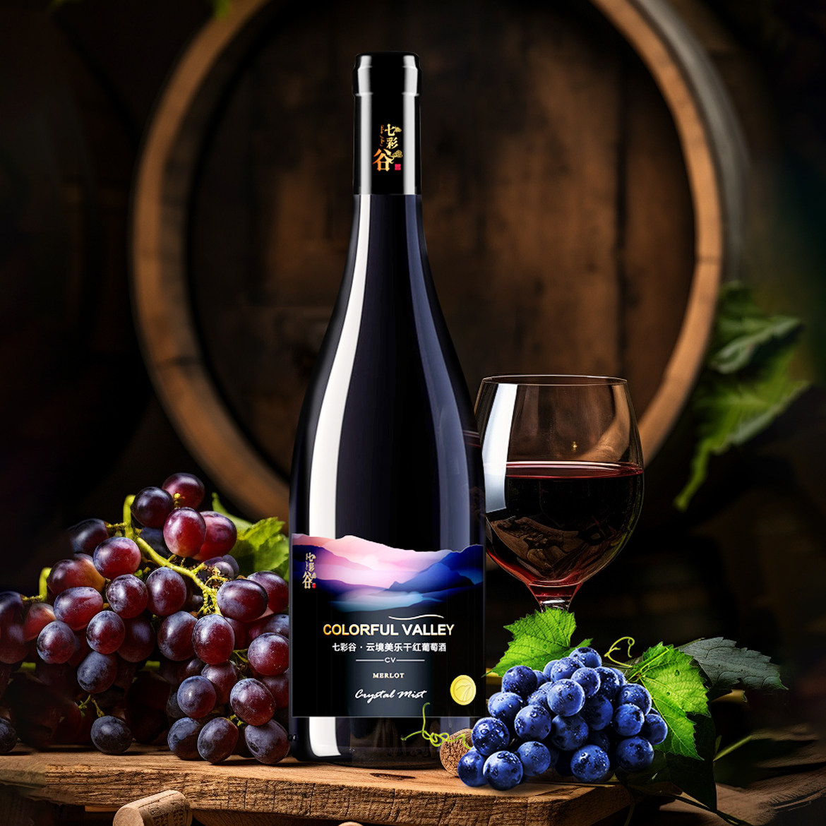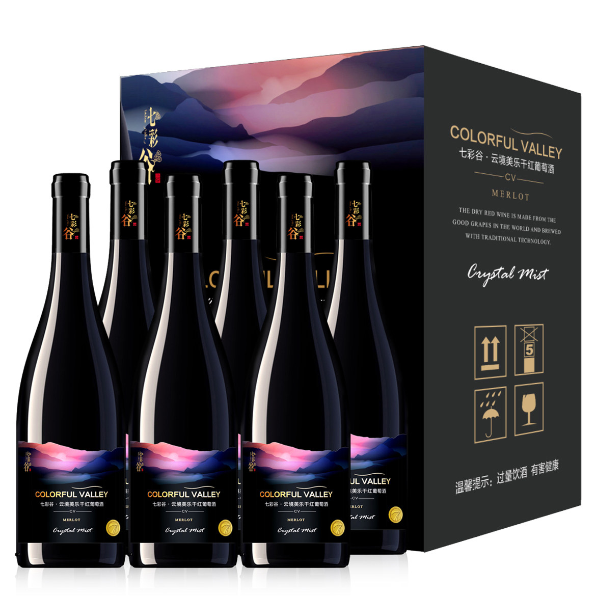 源自新疆 七彩谷云境 美乐干红葡萄酒 750ml*6瓶