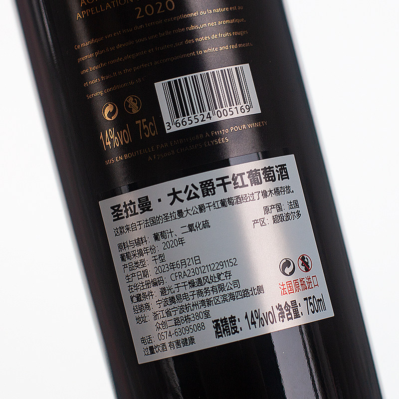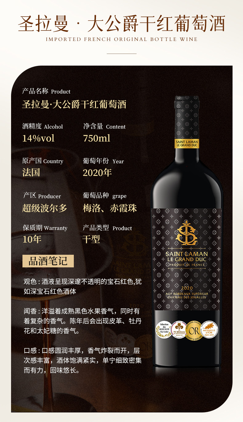 法国原瓶进口圣拉曼大公爵干红葡萄酒 横排彩箱包装750ml*6瓶