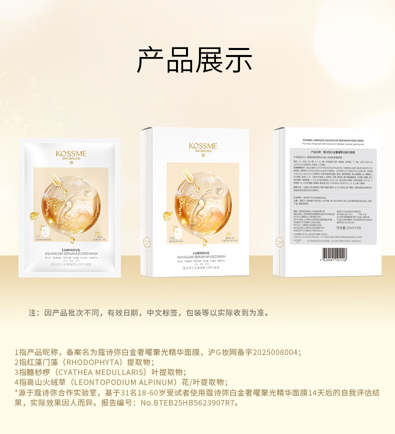 KOSSME蔻诗弥 白金奢曜聚光精华面膜5片