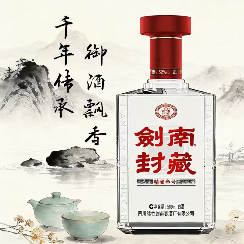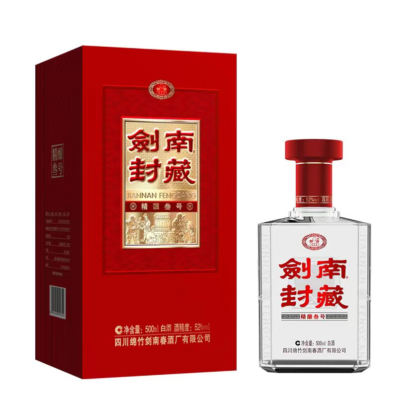 剑南春出品 剑南封藏精酿叁号 52度白酒纯粮酒500ml/瓶 单瓶装 手工高档礼盒 春节年货