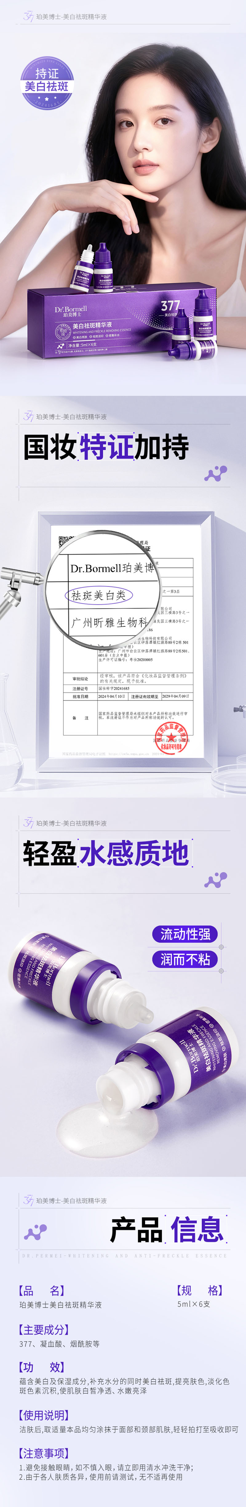 【两盒装】Dr.Bormell珀美博士美白祛斑精华液5ml×6支(紫色素颜滴款) SY10513祛斑美白类特证