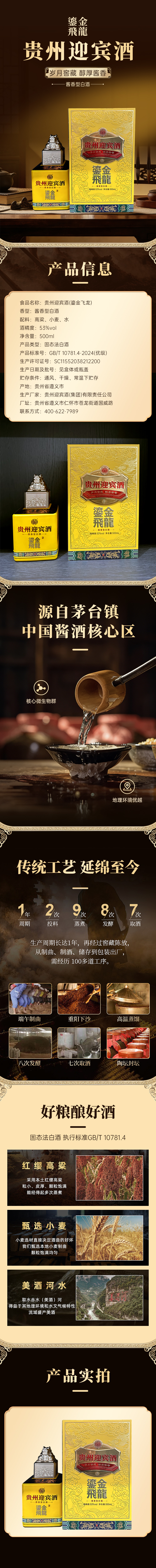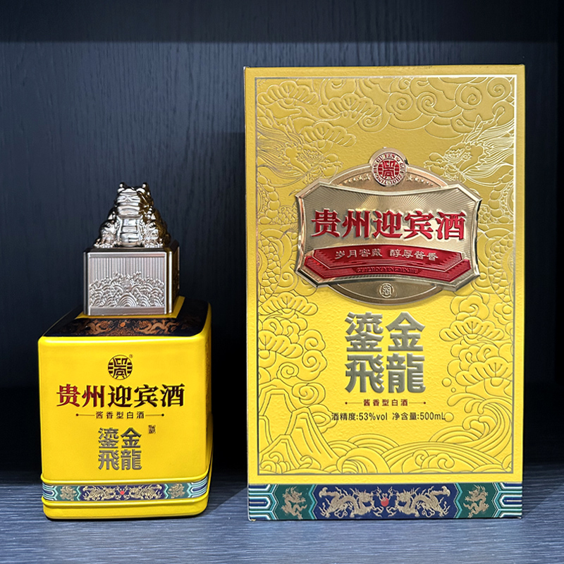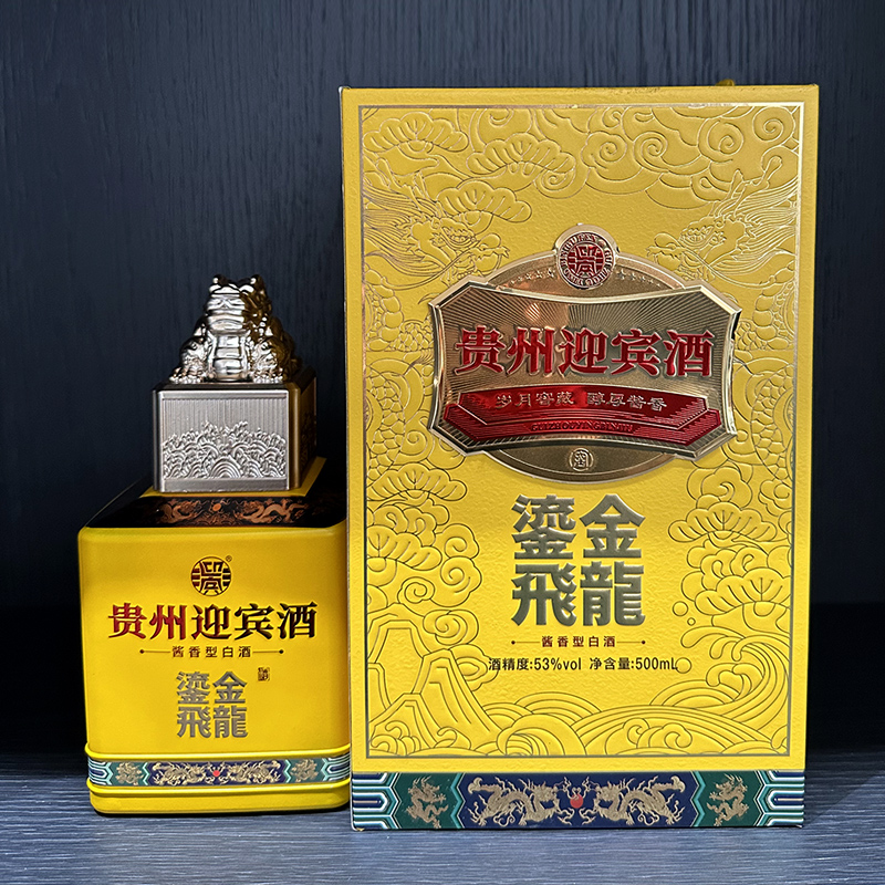 贵州迎宾 鎏金飞龙 53度酱香型白酒 500ml/瓶 单瓶礼盒装 两瓶附赠手提袋
