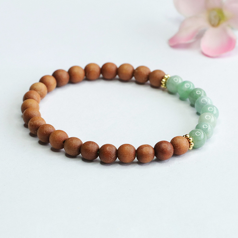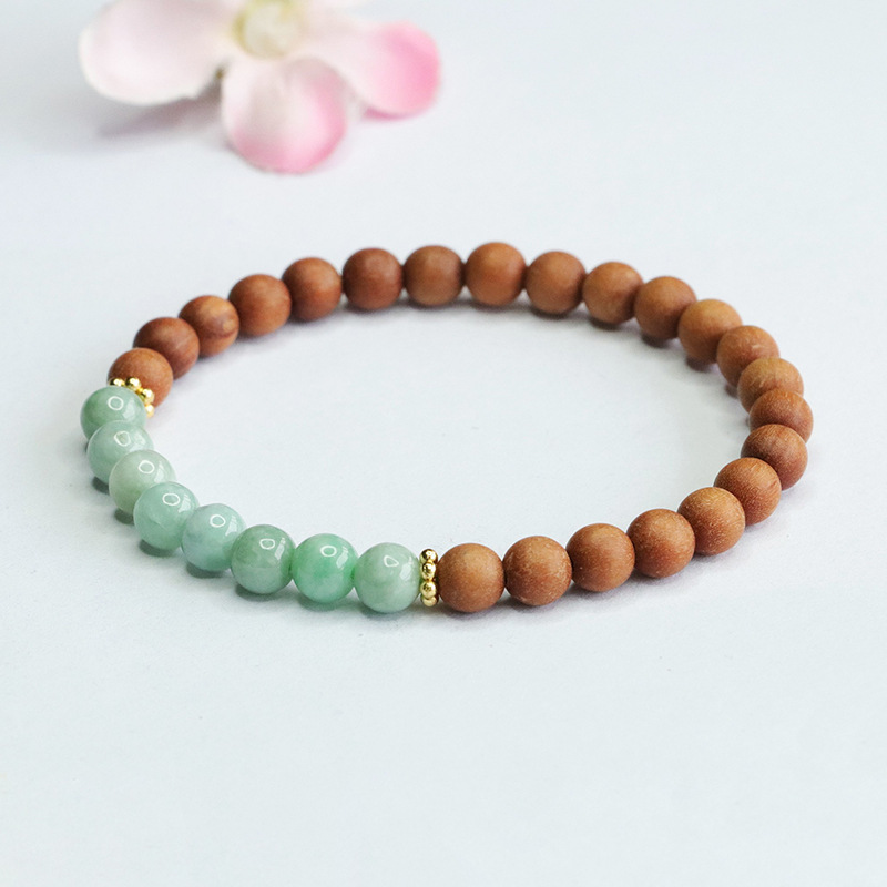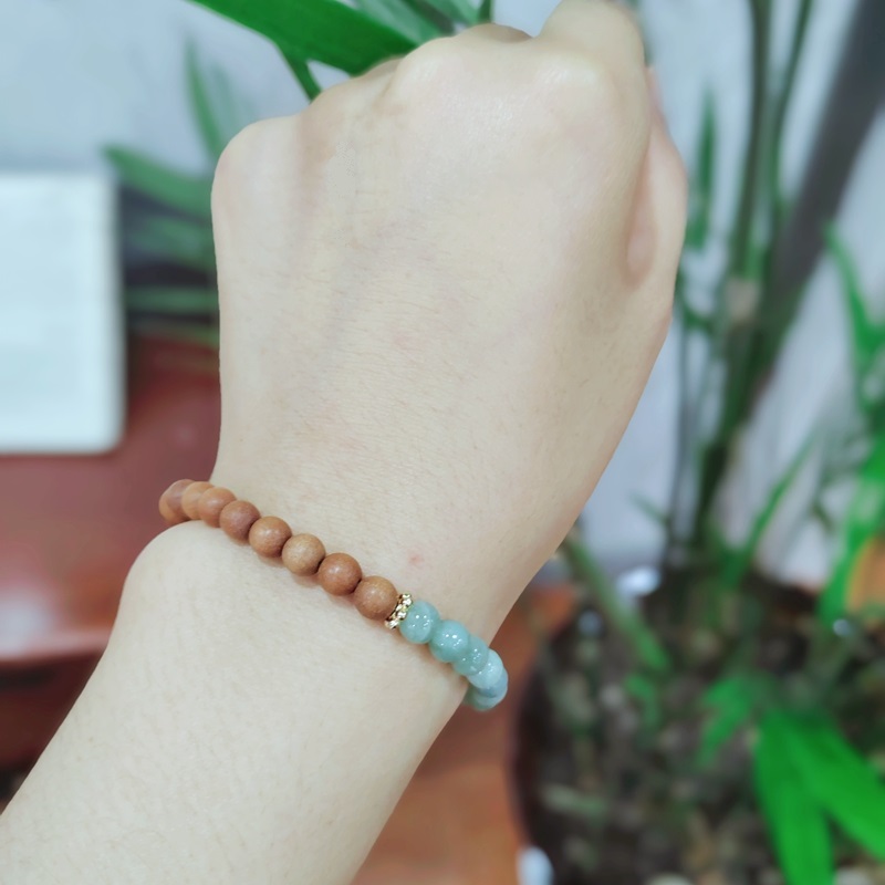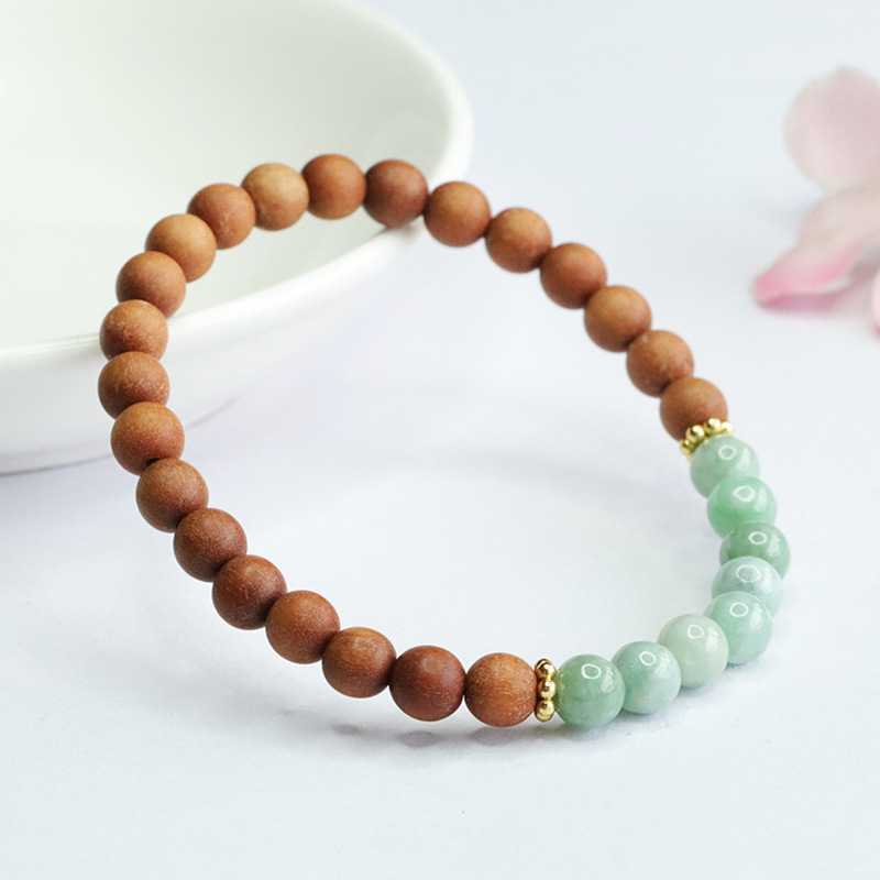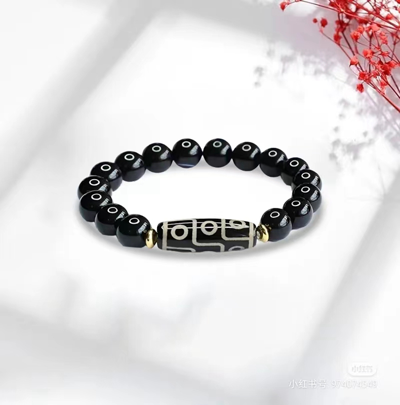 1、檀木翡翠手串;2、黑玛瑙手链