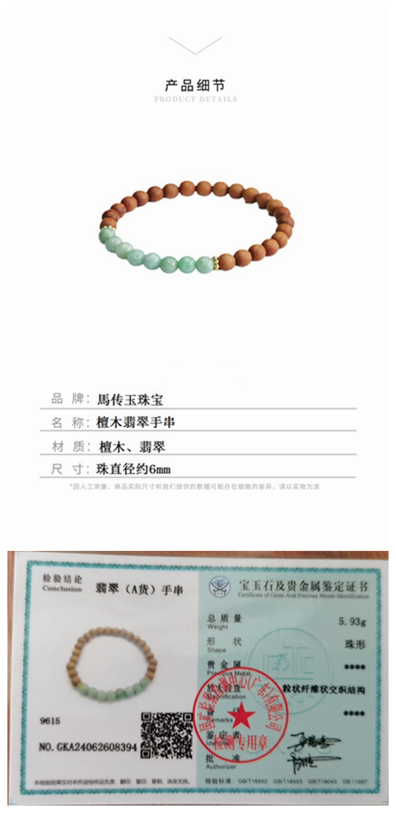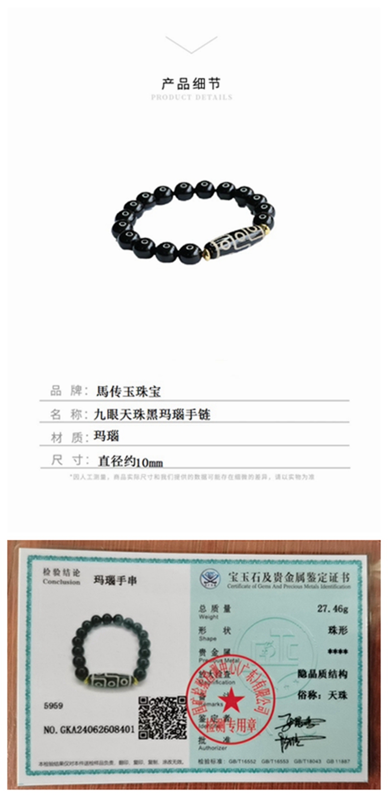 马传玉 【檀木翡翠手串6mm MCY107/九眼天珠黑玛瑙手链10mm MCY108 两种可选】【每证一品】