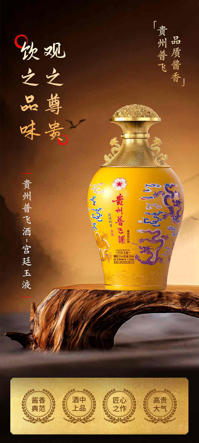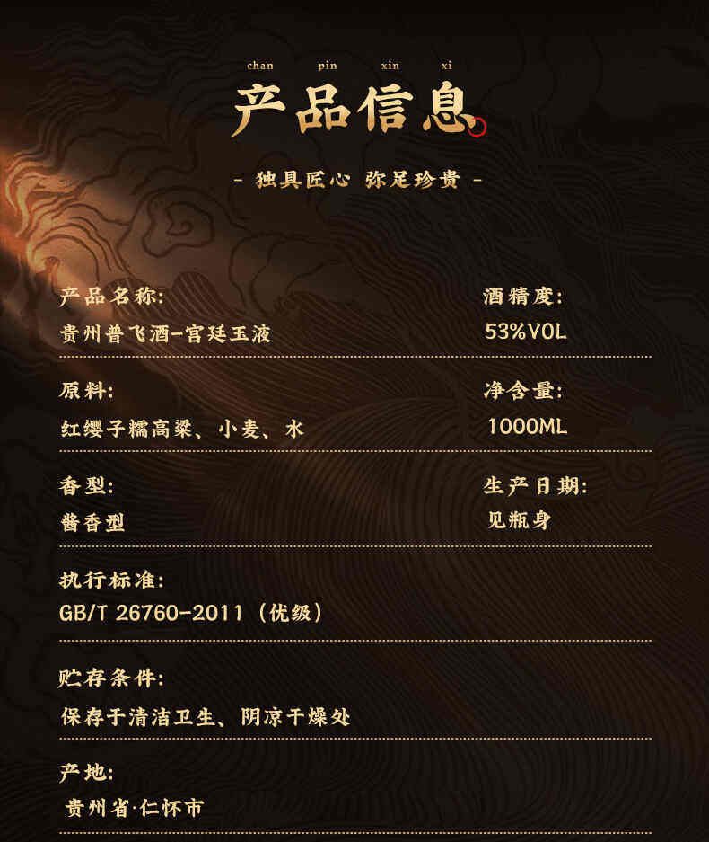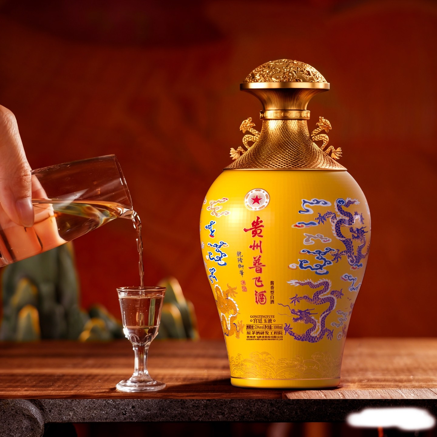 普飞 贵州普飞酒宫廷玉液 酱香型白酒53度 1000ML*1坛