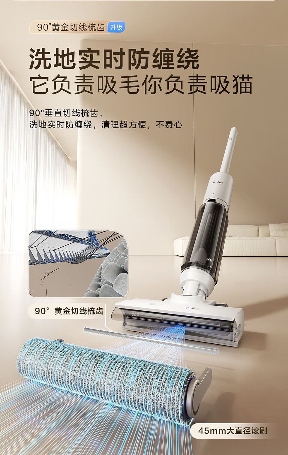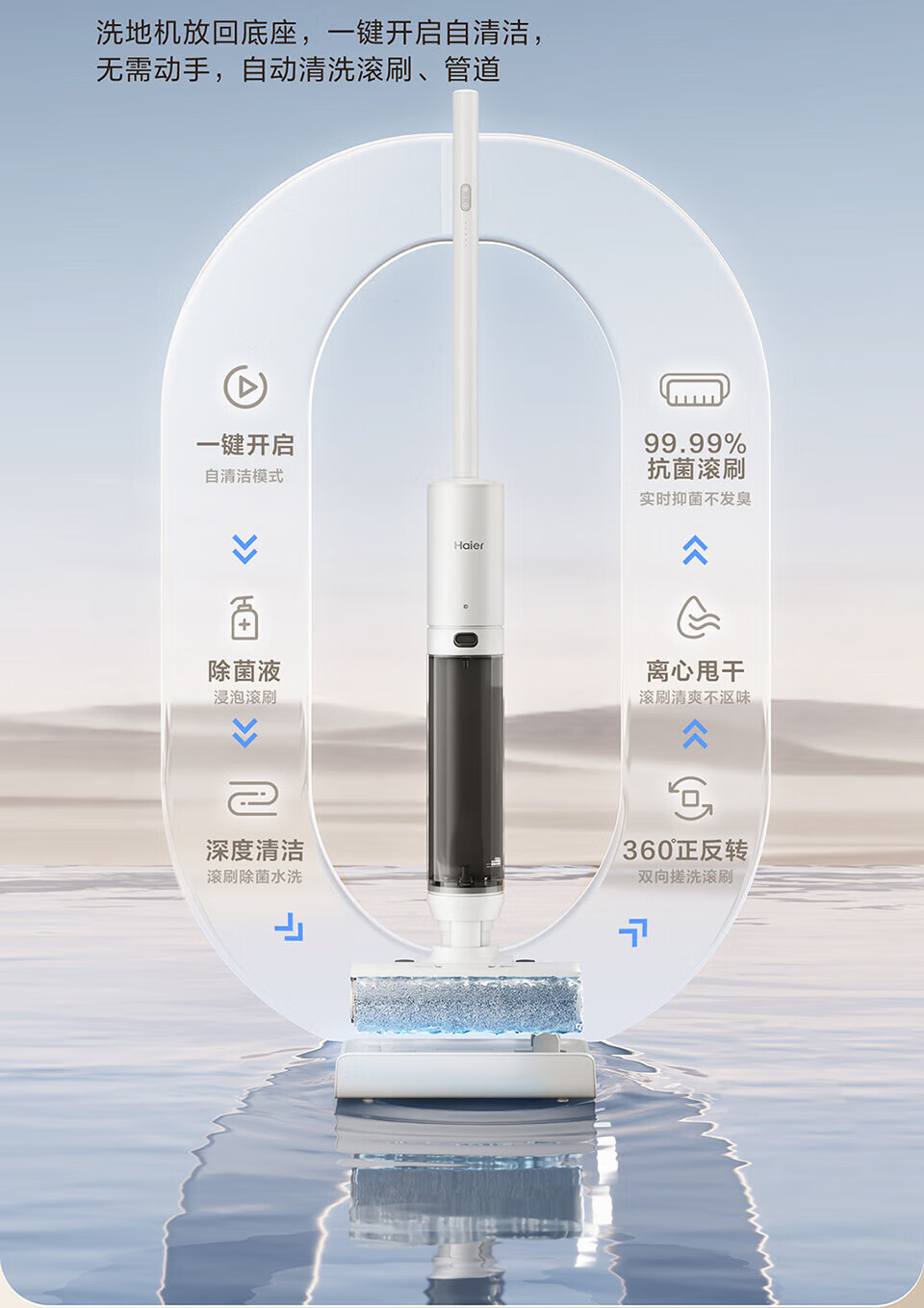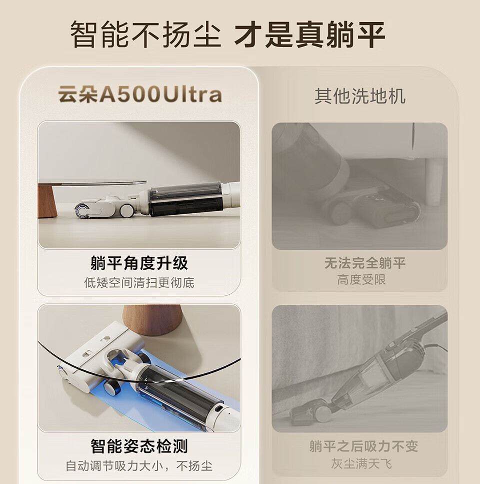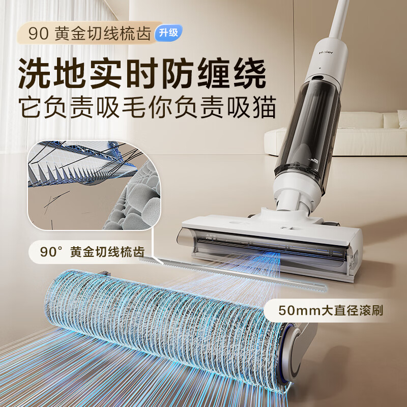 海尔Haier 家用无线智能洗地机 平躺洗地3贴边 洗拖一体自动清洗拖地机 扫地机 吸尘器 轻量机身简约不简单 除菌防缠绕 活水循环洗 躺平探底清扫 A500Ultra 节日礼物 乔迁好礼