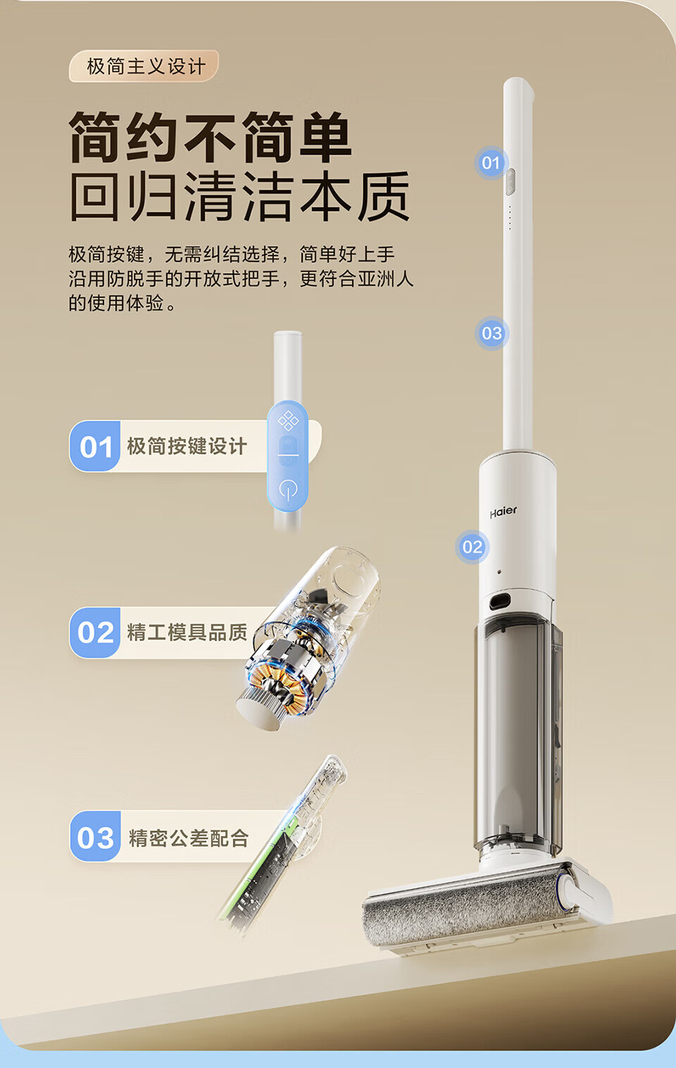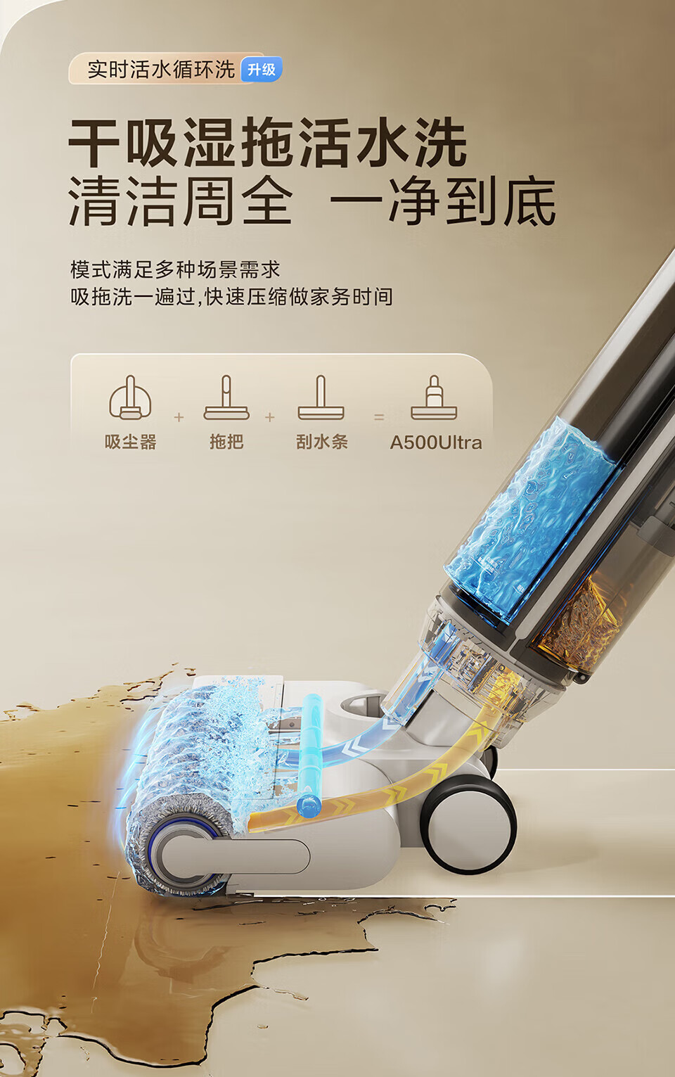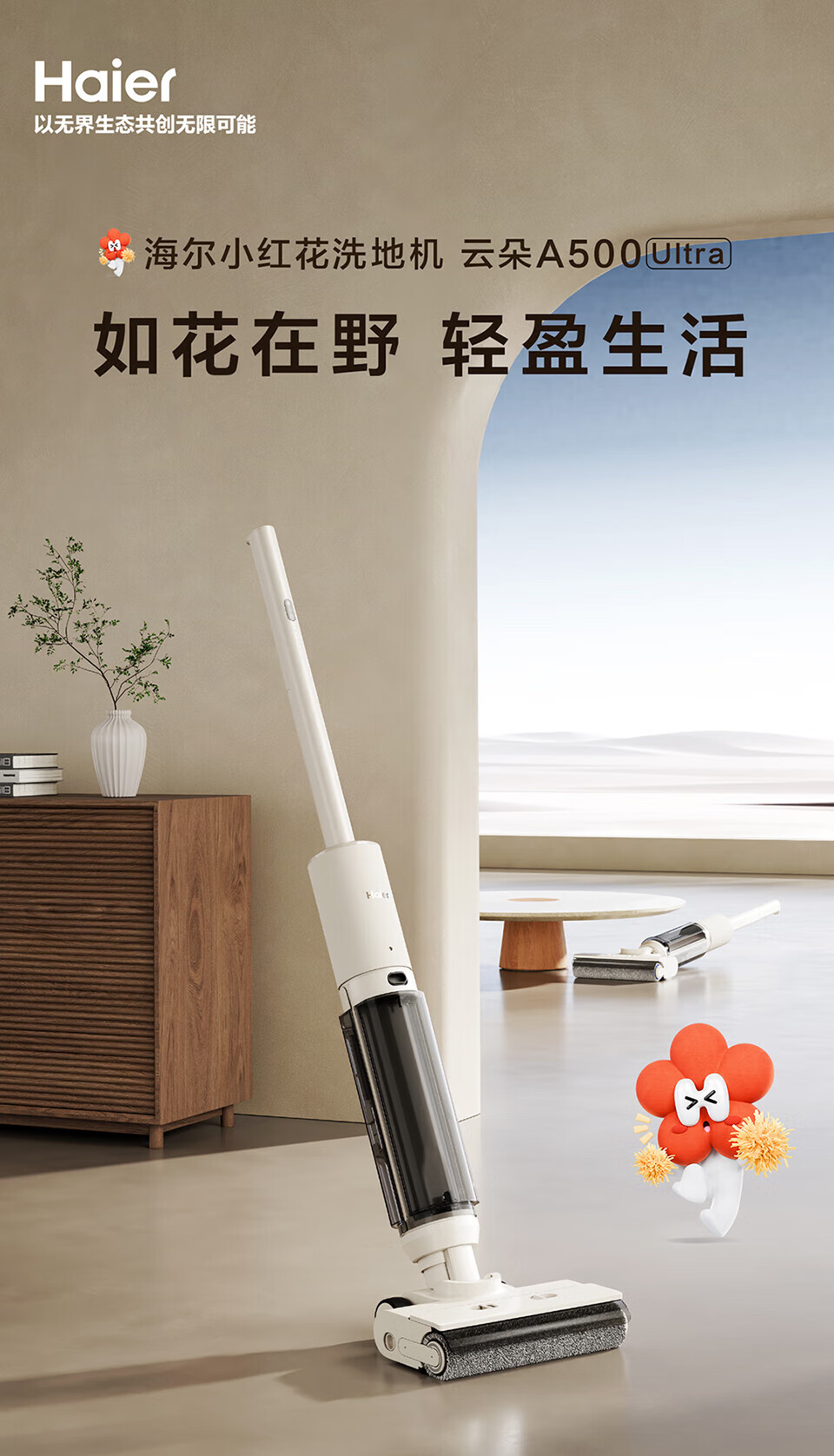 海尔Haier 家用无线智能洗地机 平躺洗地3贴边 洗拖一体自动清洗拖地机 扫地机 吸尘器 轻量机身简约不简单 除菌防缠绕 活水循环洗 躺平探底清扫 A500Ultra 节日礼物 乔迁好礼