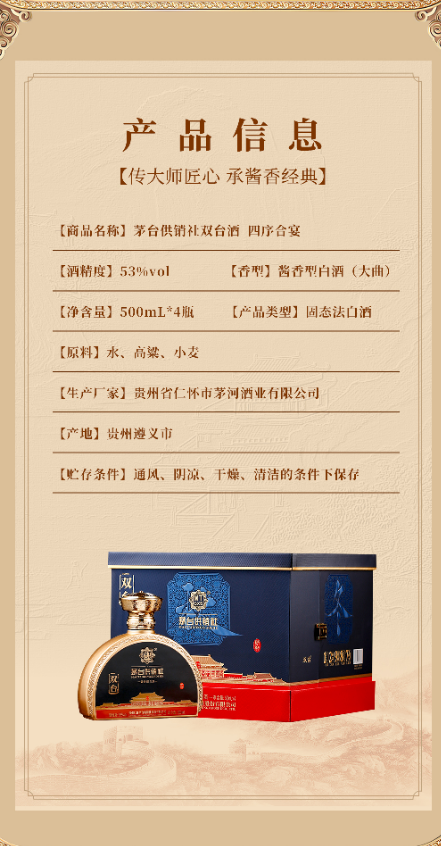 茅台供销社四季藏酱韵 匠心承经典 马年新品 春夏秋冬礼盒套组500ml*4瓶送陶瓷酒杯四个