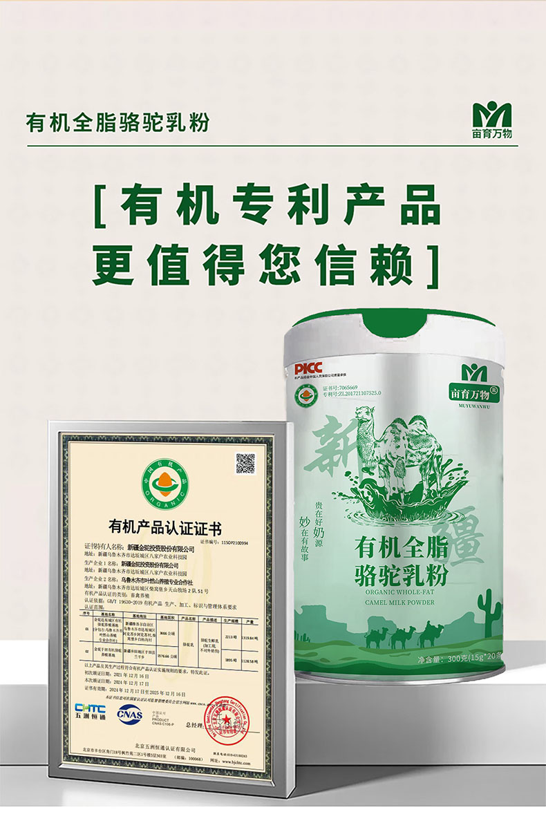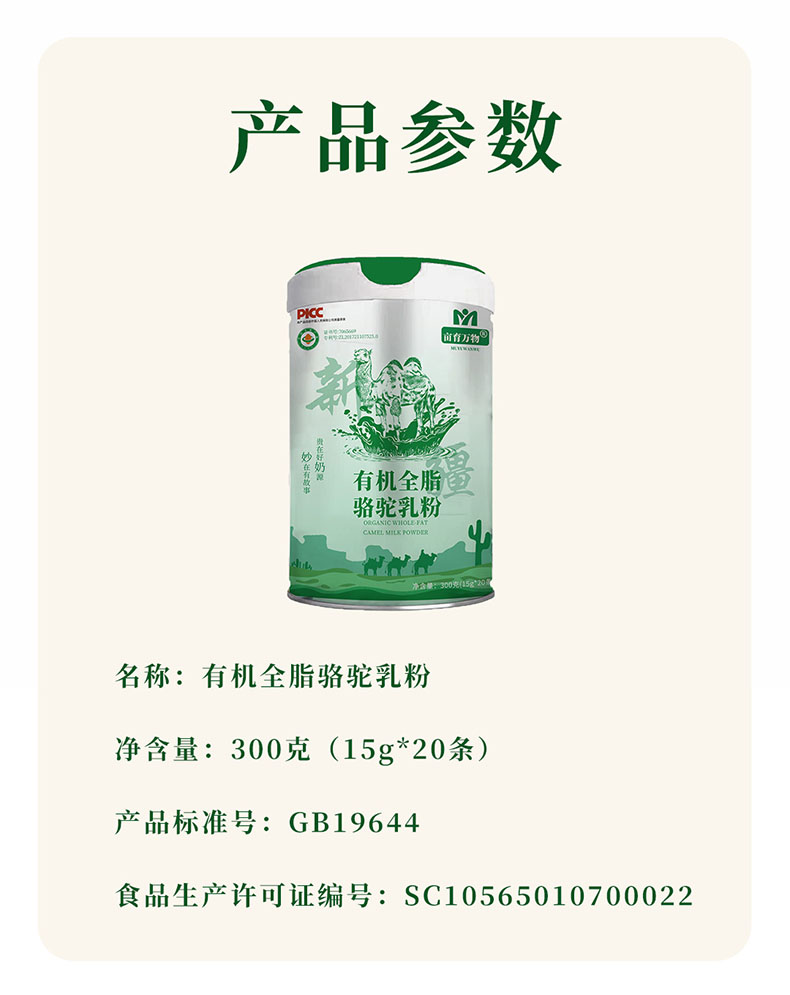 【1罐】亩育万物 有机全脂骆驼乳粉300g(15g*20条)(新国标)