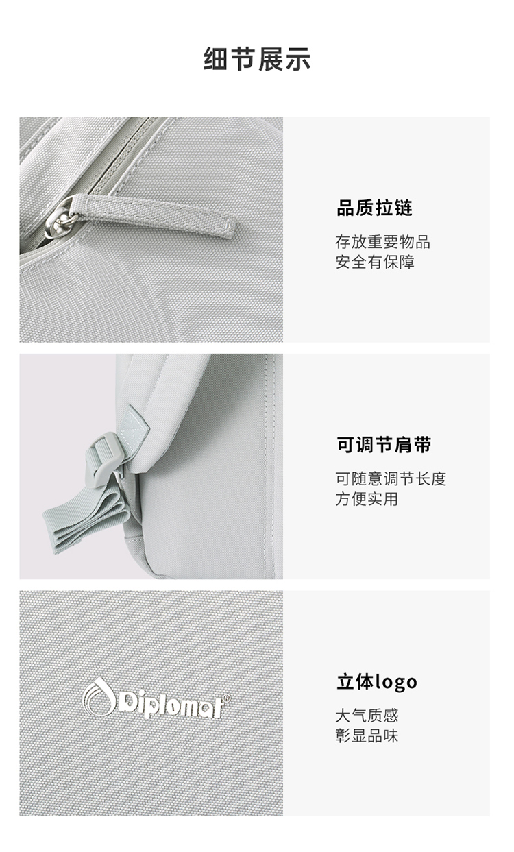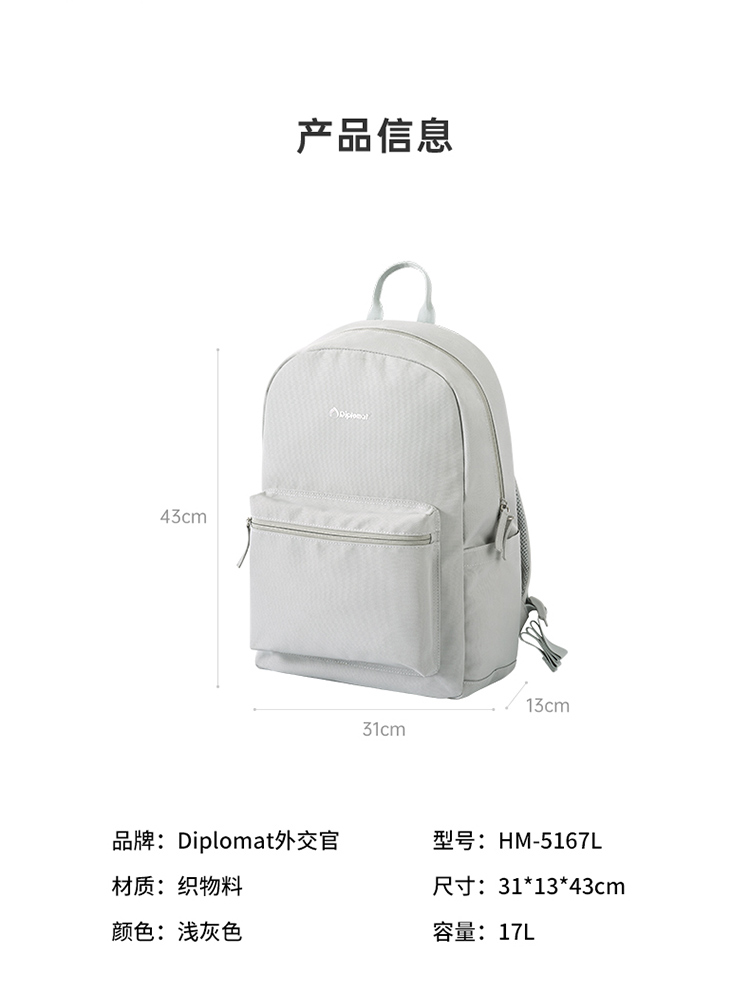 外交官双肩包浅灰色 普区包邮 质地轻盈防泼耐磨立体包型HM-5167L