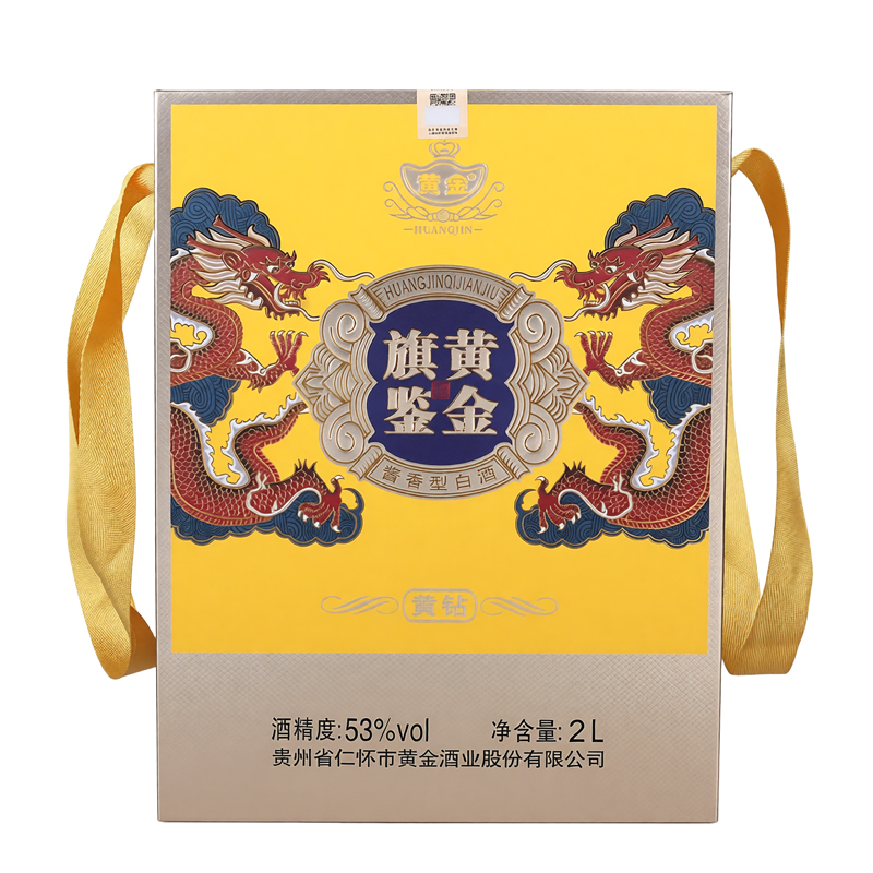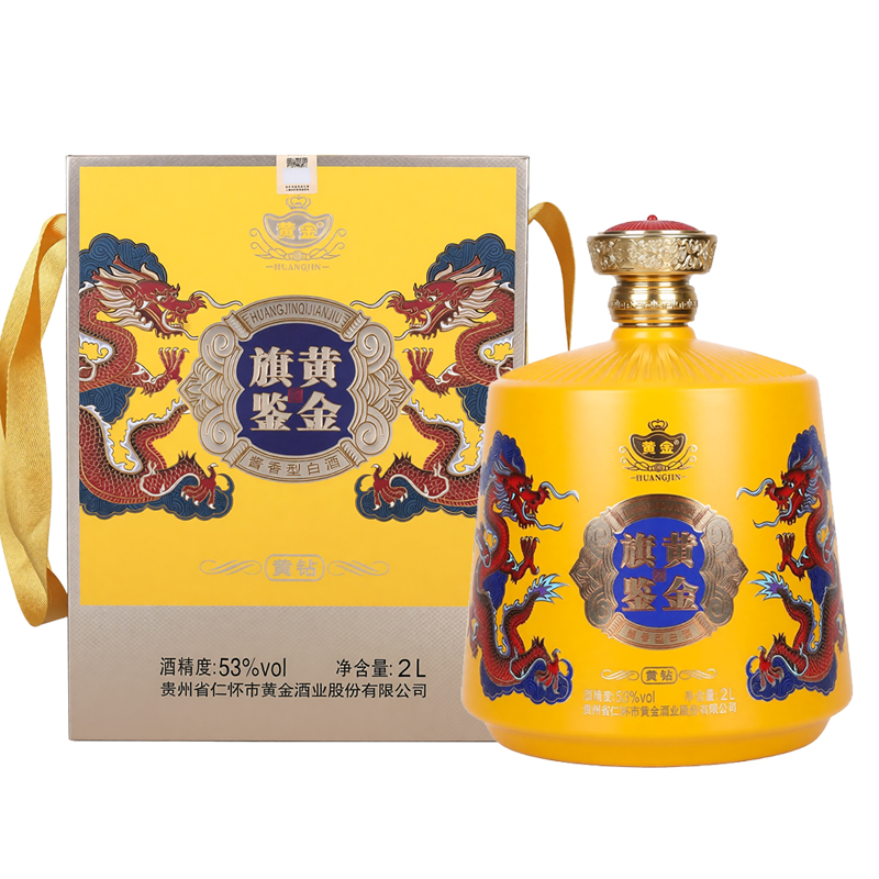 黄金旗鉴酒 黄钻 黄金酱酒 53度酱香型白酒 2L装 大容量坛装 手提礼盒装