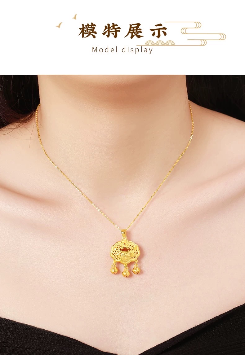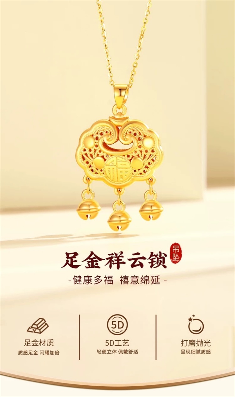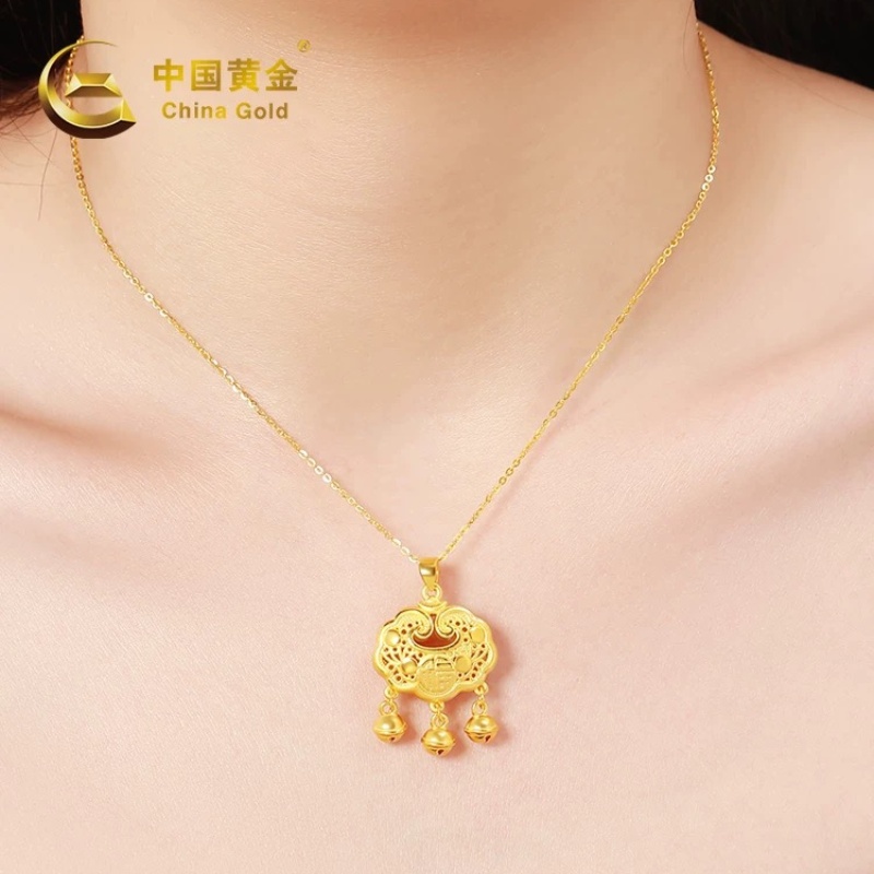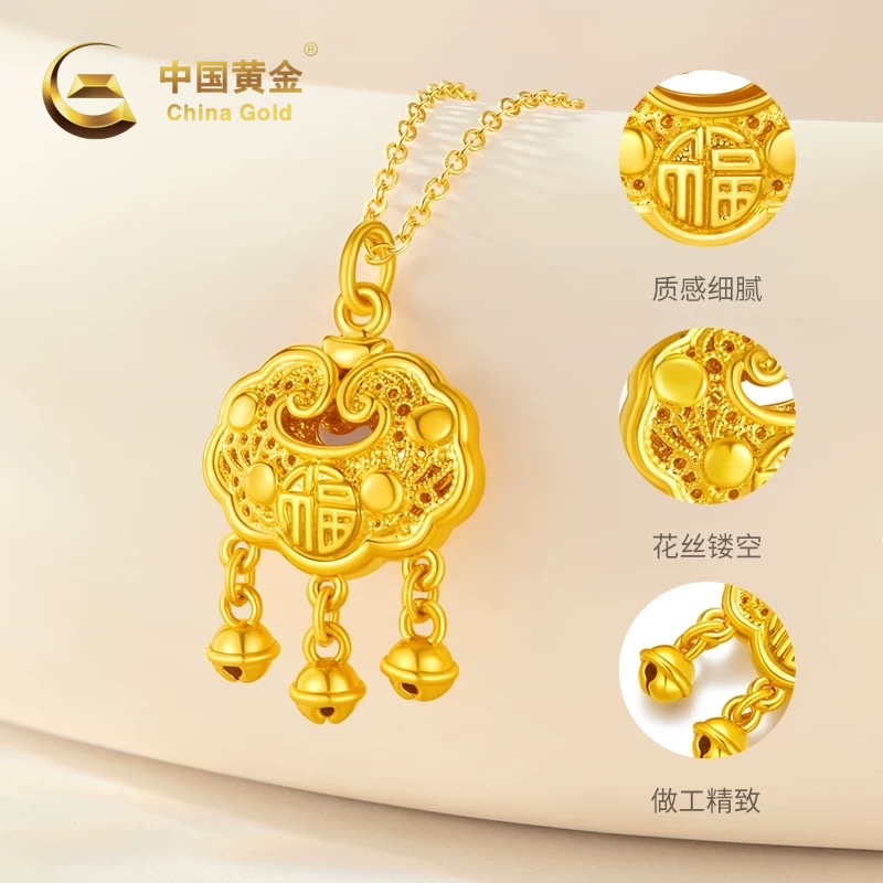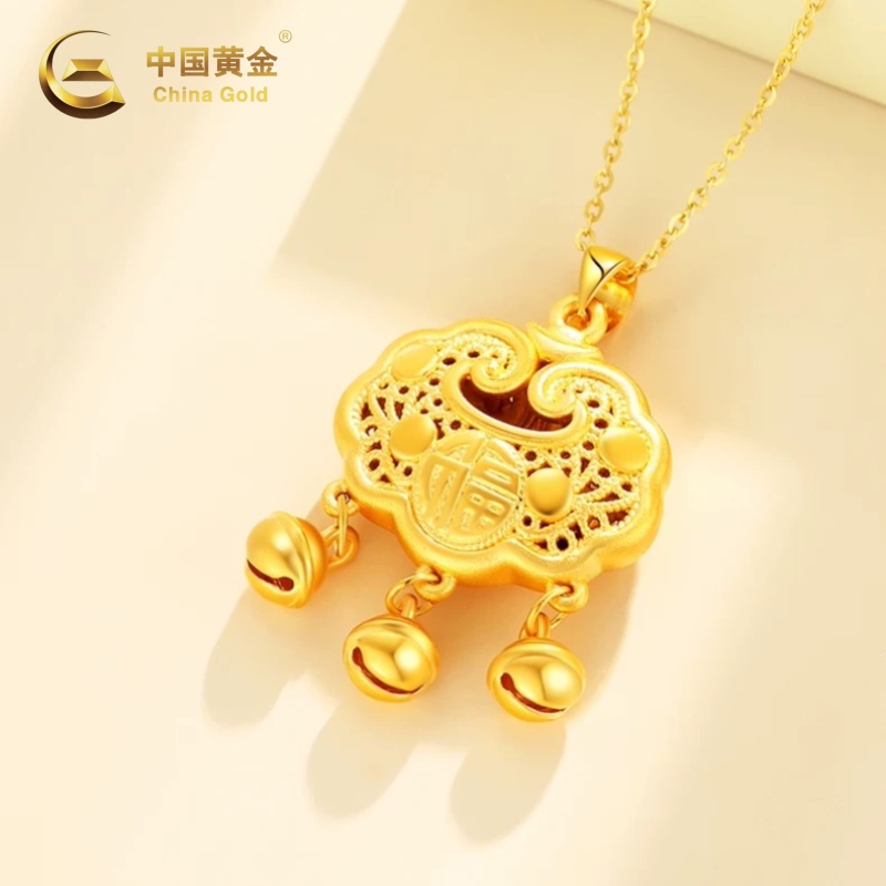 中国黄金祥云锁足金999吊坠《证书+吊牌+质保单+礼盒+手提袋》赠送S925纯银链(金色)链子不包售后SZ121107 足金重量约1.2g 产品重量约2.2g