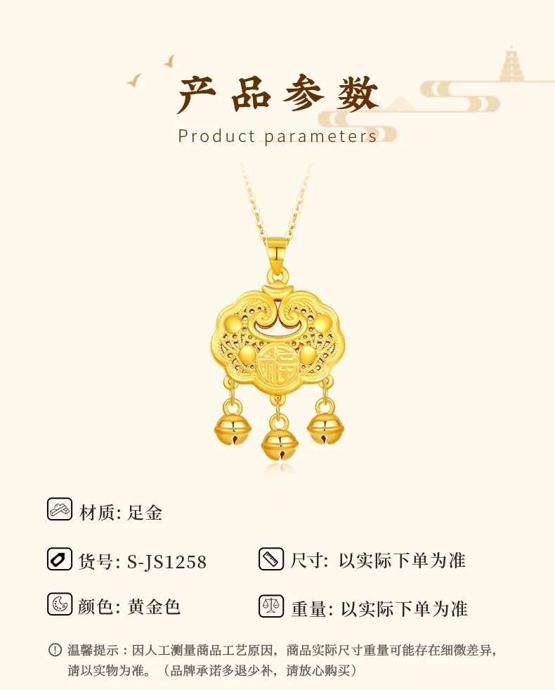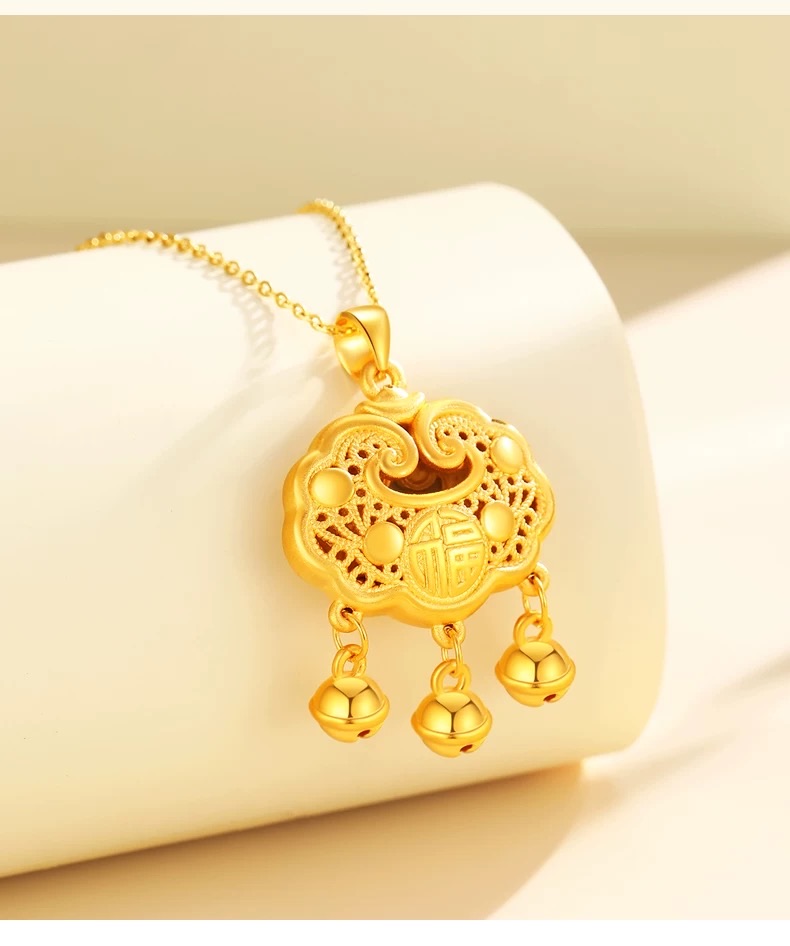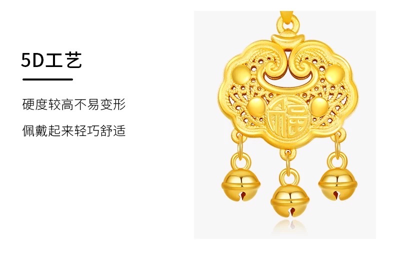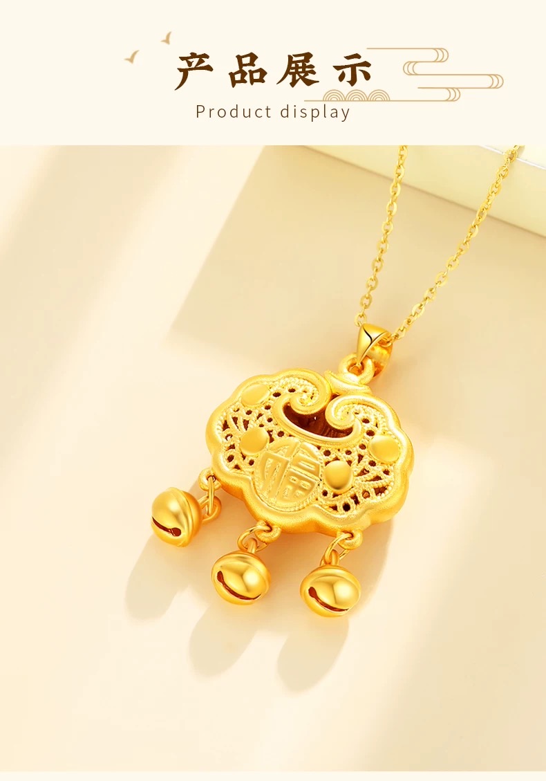 中国黄金祥云锁足金999吊坠《证书+吊牌+质保单+礼盒+手提袋》赠送S925纯银链(金色)链子不包售后SZ121107 足金重量约1.2g 产品重量约2.2g