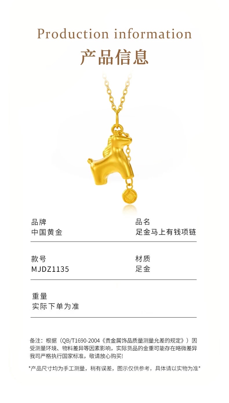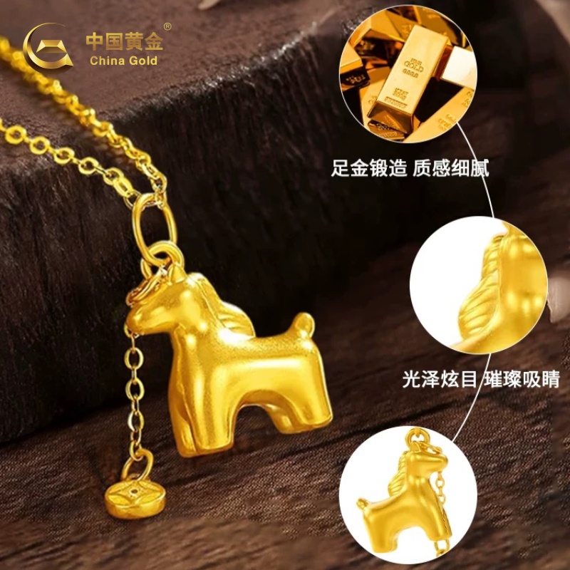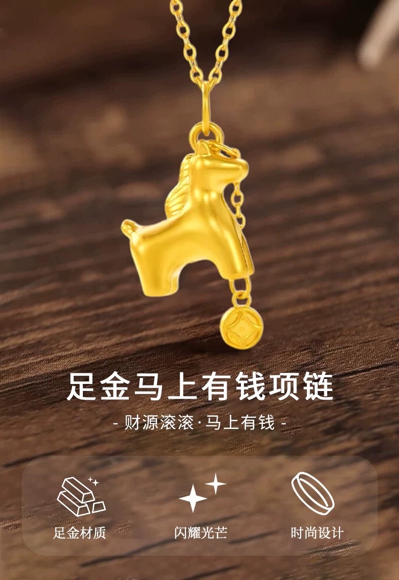 中国黄金马上有钱足金999吊坠《证书+吊牌+质保单+礼盒+手提袋》赠送S925纯银链(金色)链子不包售后SZ121108 足金重量约1.2g 产品重量约2.2g