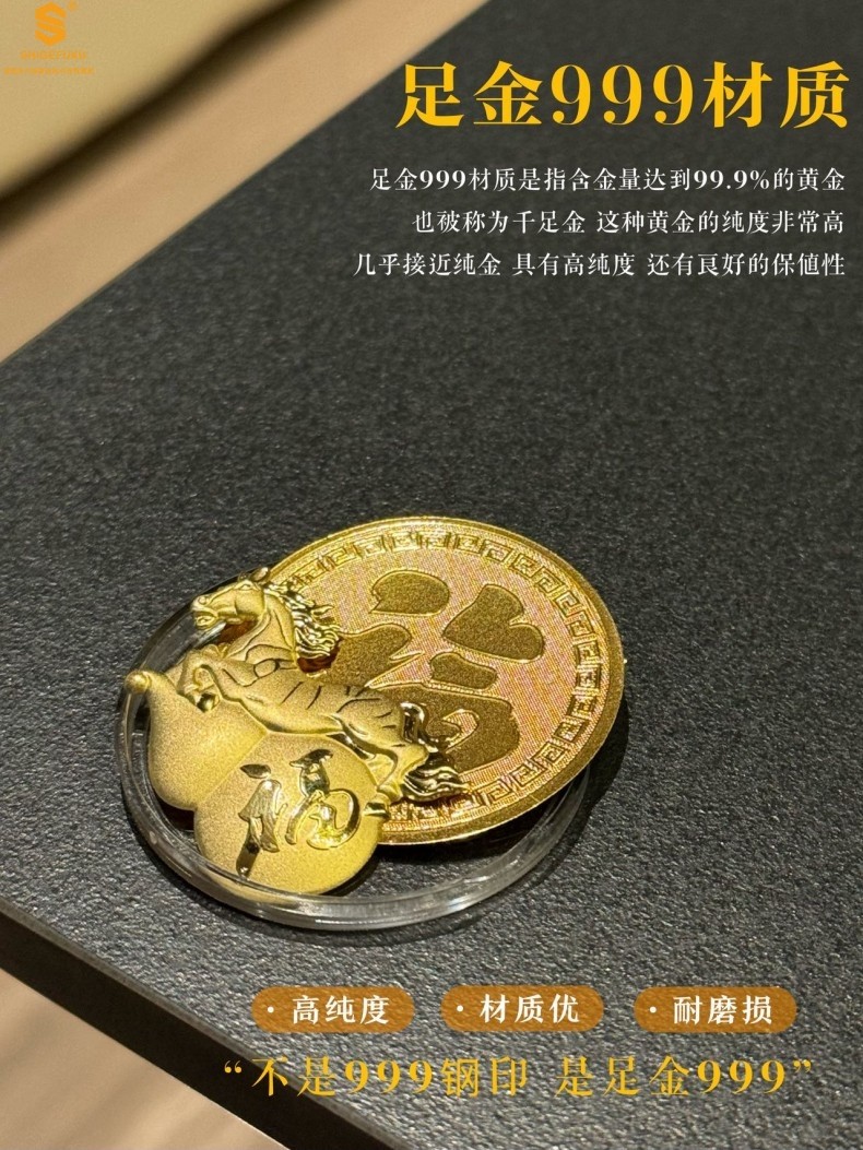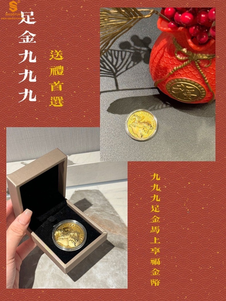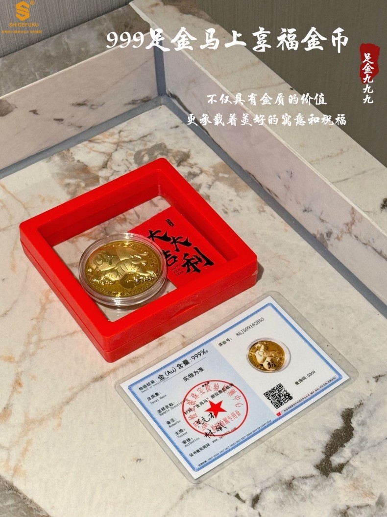 香港周六福黄金钻石首饰999足金马上享福金币