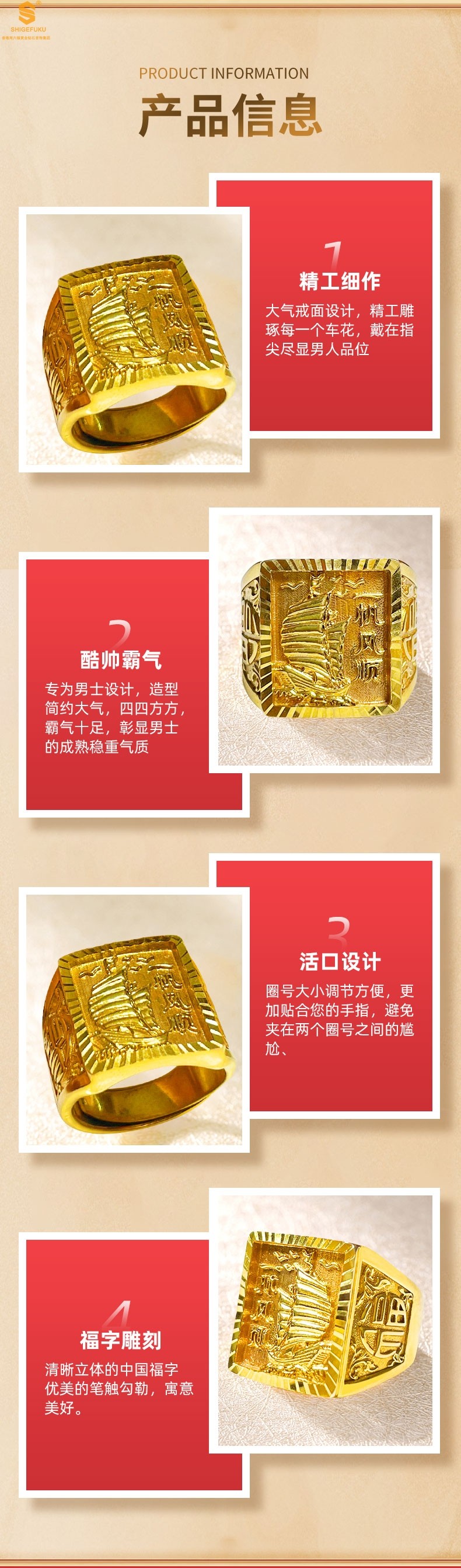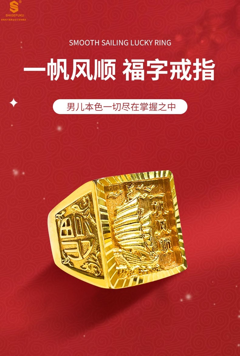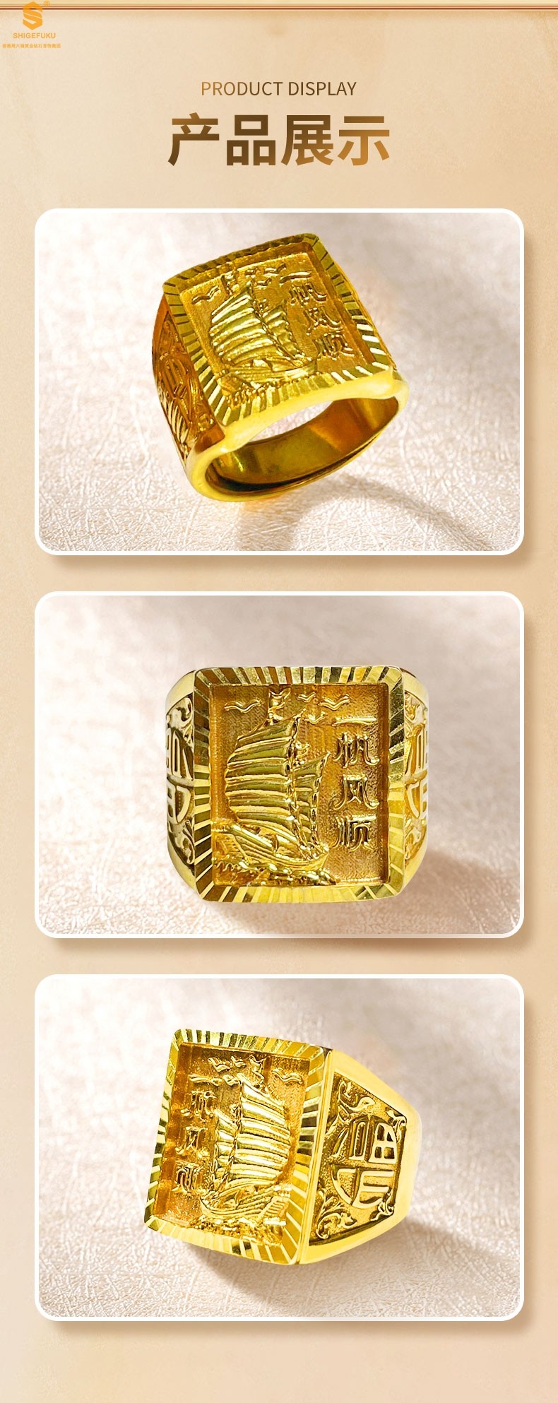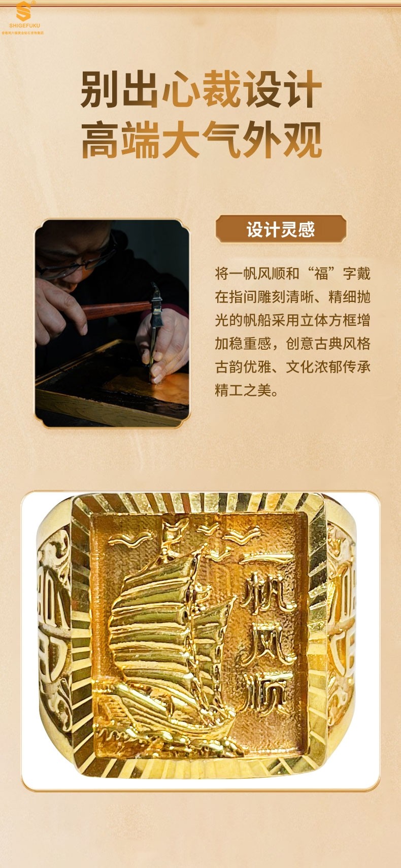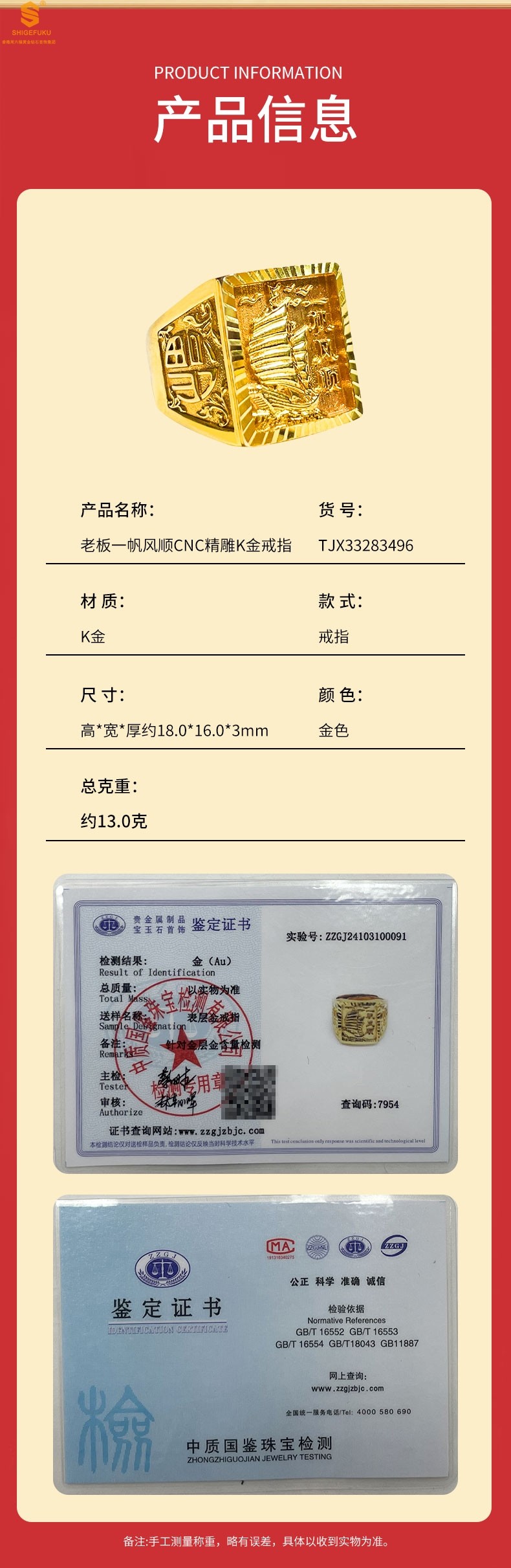 香港周六福黄金钻石首饰老板一帆风顺CNC精雕K金戒指