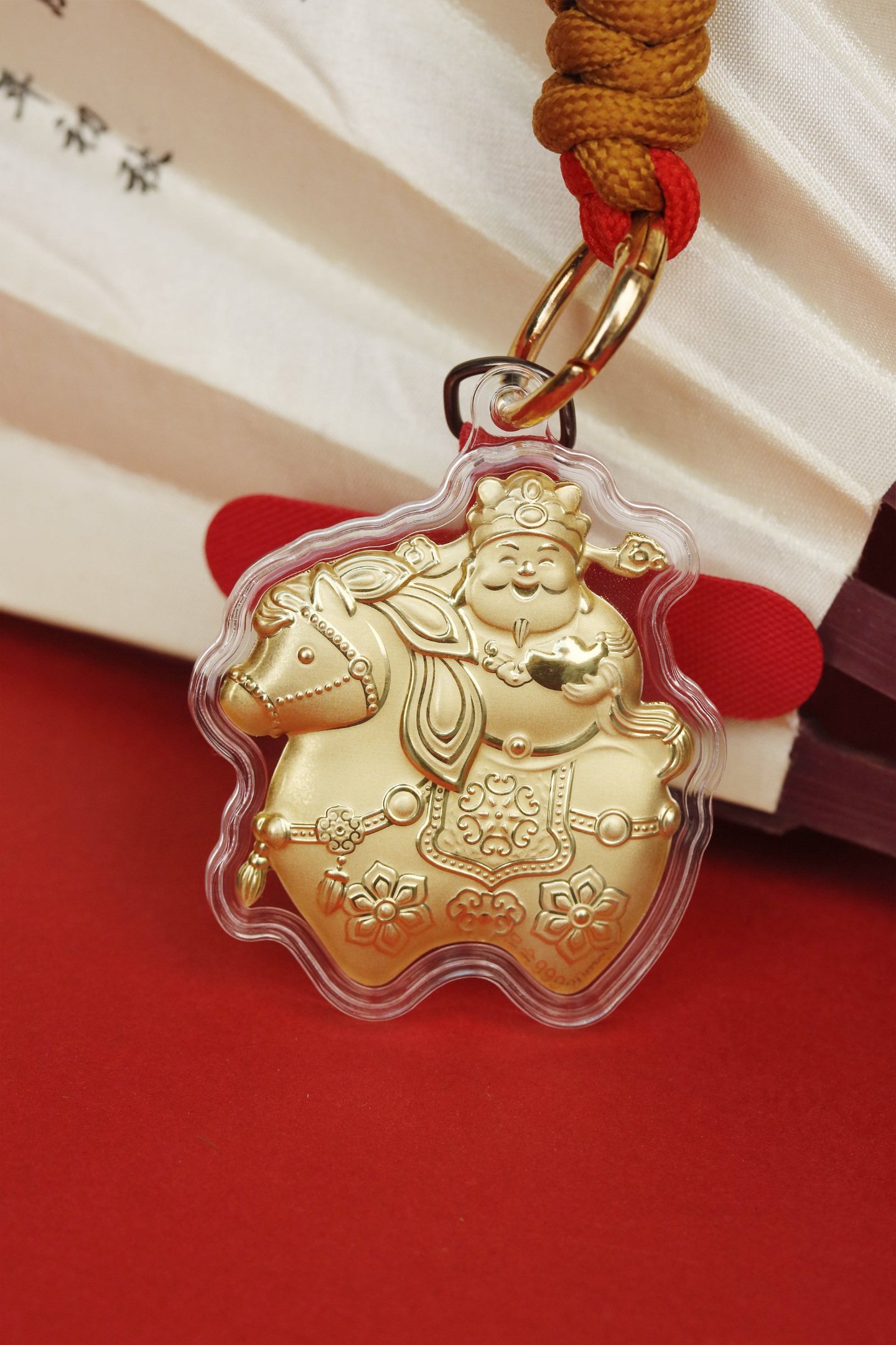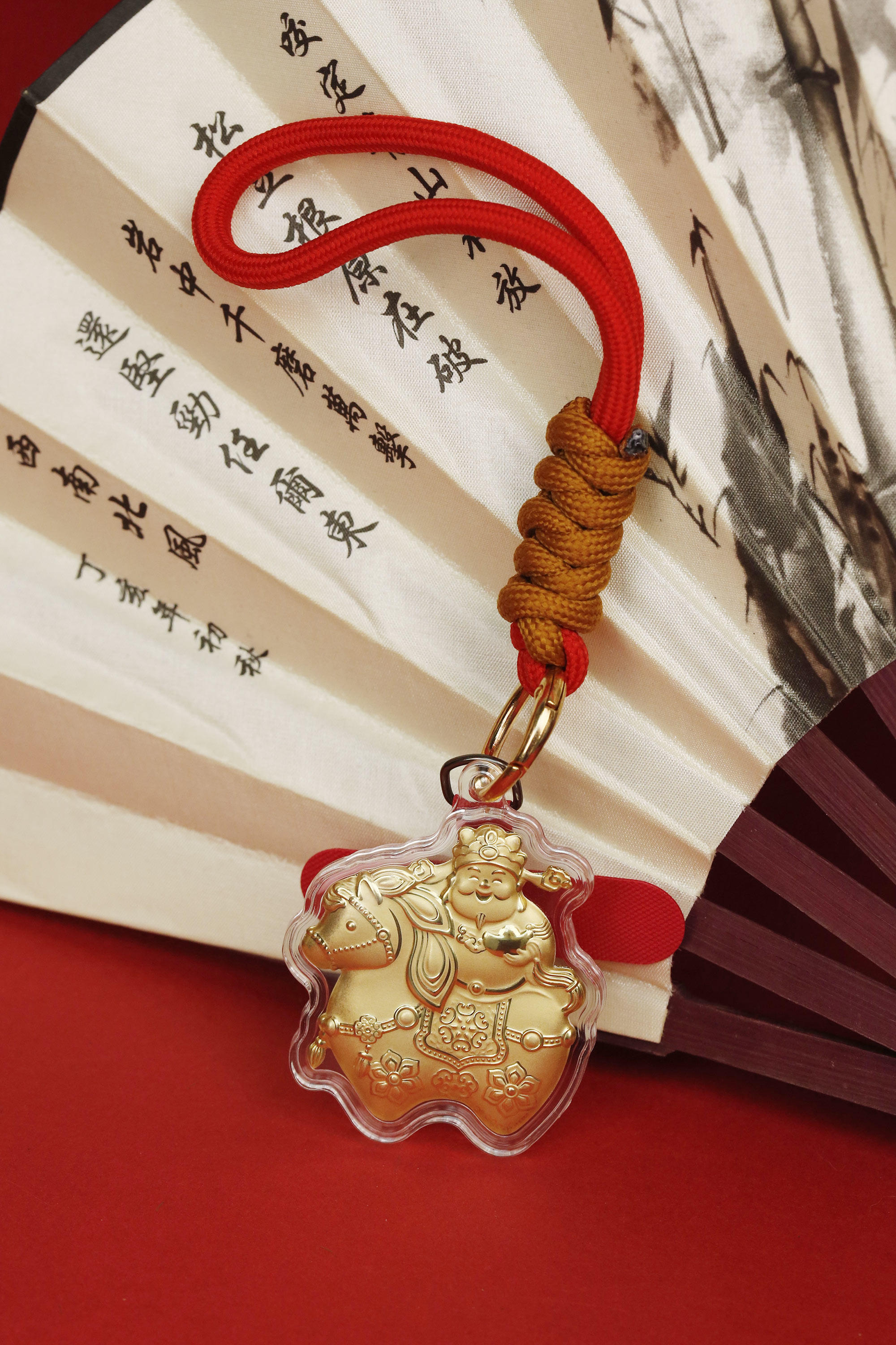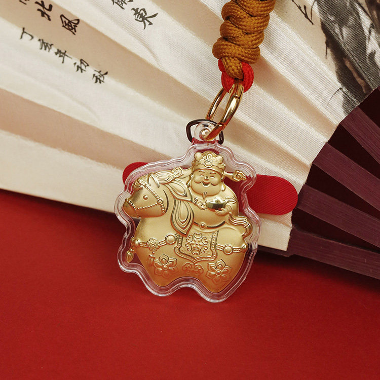 周大金含金马上有钱财神爷钥匙扣挂件包包装饰