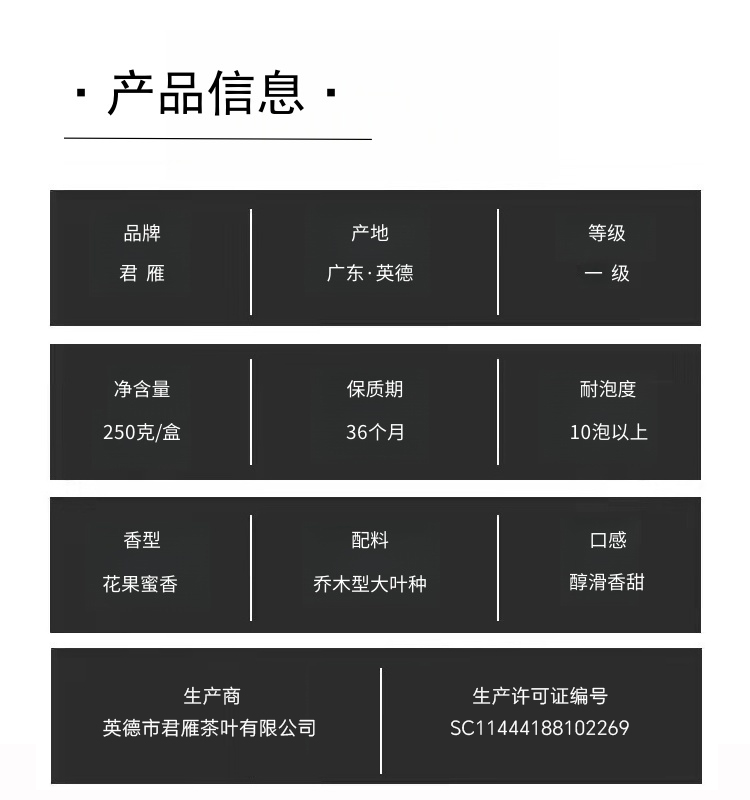 君雁古树红茶 英红九号 浓香型高香红茶250g 高端茶叶礼盒装