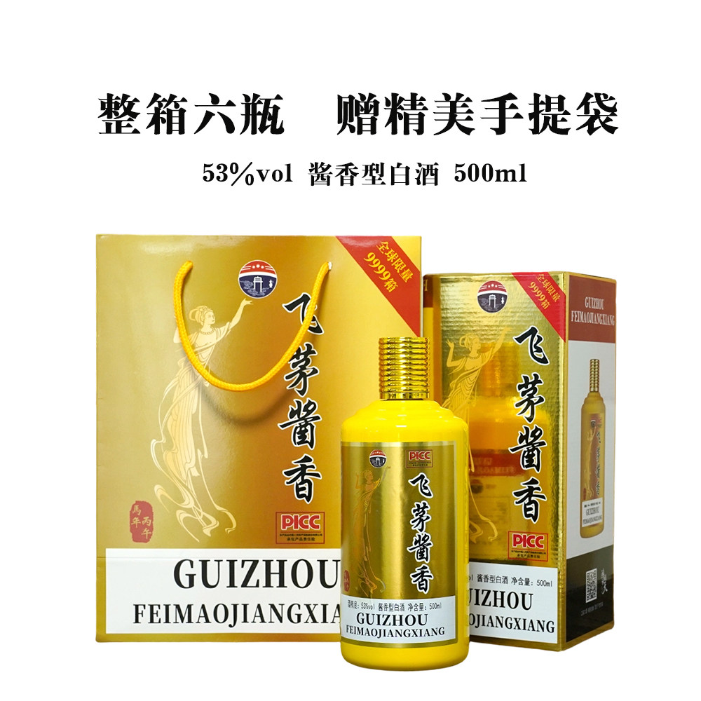 飞茅酱香53度酱香型500ml酒整箱6瓶装赠精品手提袋送礼节日商务