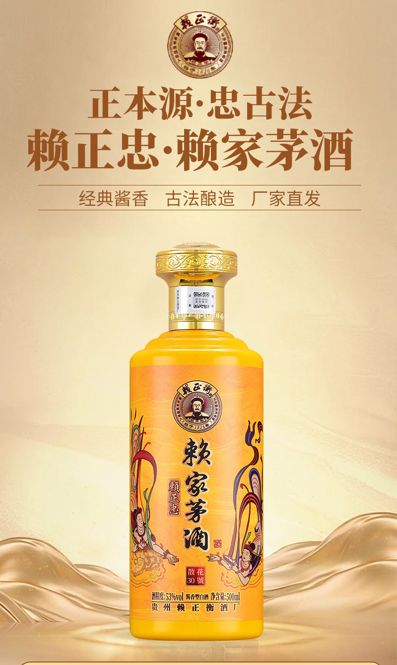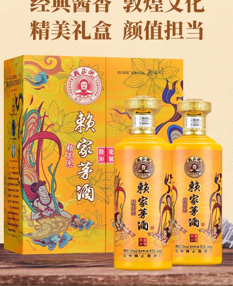 赖正忠赖家茅酒·散花30 53度酱香型白酒500ml*2瓶礼盒装