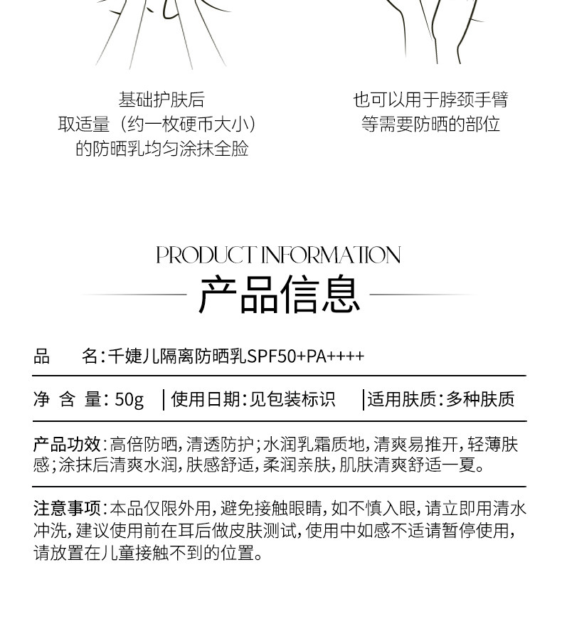千婕儿隔离防晒乳(白瓶)SPF50+PA++++
